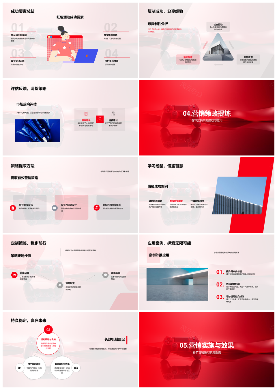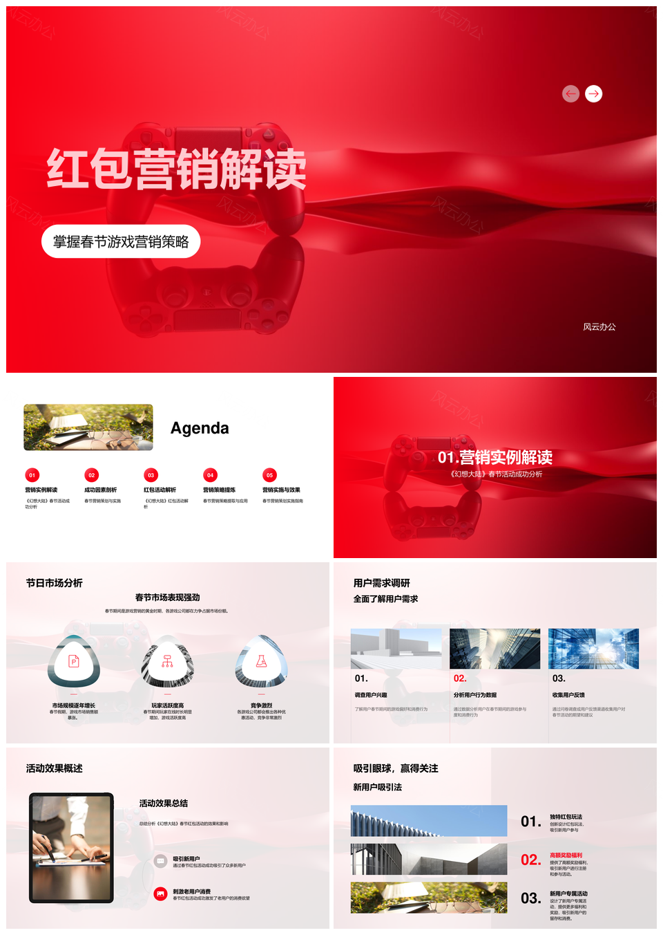 这是一张春节红包游戏营销激活新老用户消费策略PPT模板,包含春节、红包、游戏、营销、激活、新老用户、消费策略等主题内容,也可用作春节红包游戏营销、红包游戏营销激活、游戏营销激活新老用户、营销激活新老用户消费、激活新老用户消费策略、春节红包激活新老用户、春节游戏营销激活策略、红包游戏激活消费策略、游戏营销激活消费策略、营销激活新老用户策略、春节激活新老用户消费、红包激活新老用户策略、游戏激活新老用户消费、激活消费策略、红包消费策略等PPT场景使用。 风云办公提供的春节红包游戏营销激活新老用户消费策略PPT模板,下载格式为pptx,一共33页,作品中文字及图均可以修改和编辑,图片更改请在作品中右键图片并更换,文字修改请直接点击文字进行修改。