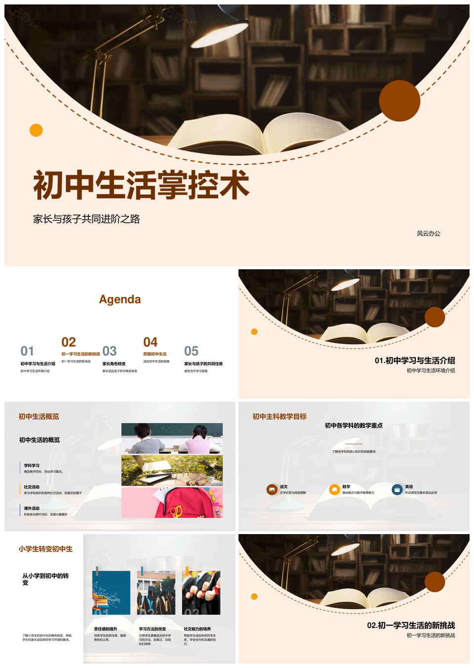 风云办公提供的初中生活掌控术书本开启PPT模板,下载格式为pptx,一共23页,作品中文字及图均可以修改和编辑,图片更改请在作品中右键图片并更换,文字修改请直接点击文字进行修改。