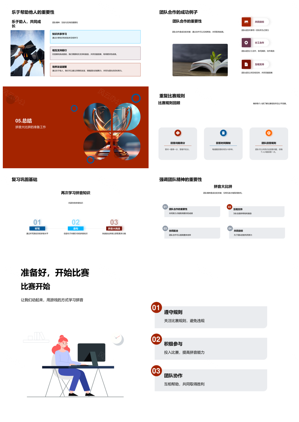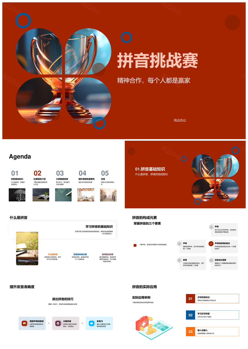 风云办公提供的小学拼音挑战赛教育游戏合作精神奖杯PPT模板,下载格式为pptx,一共25页,作品中文字及图均可以修改和编辑,图片更改请在作品中右键图片并更换,文字修改请直接点击文字进行修改。