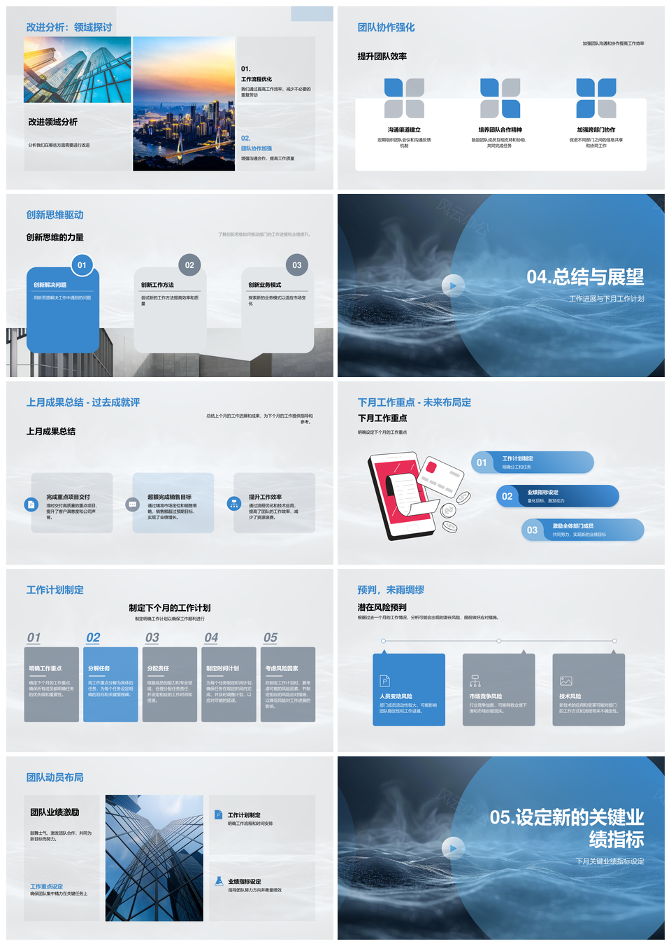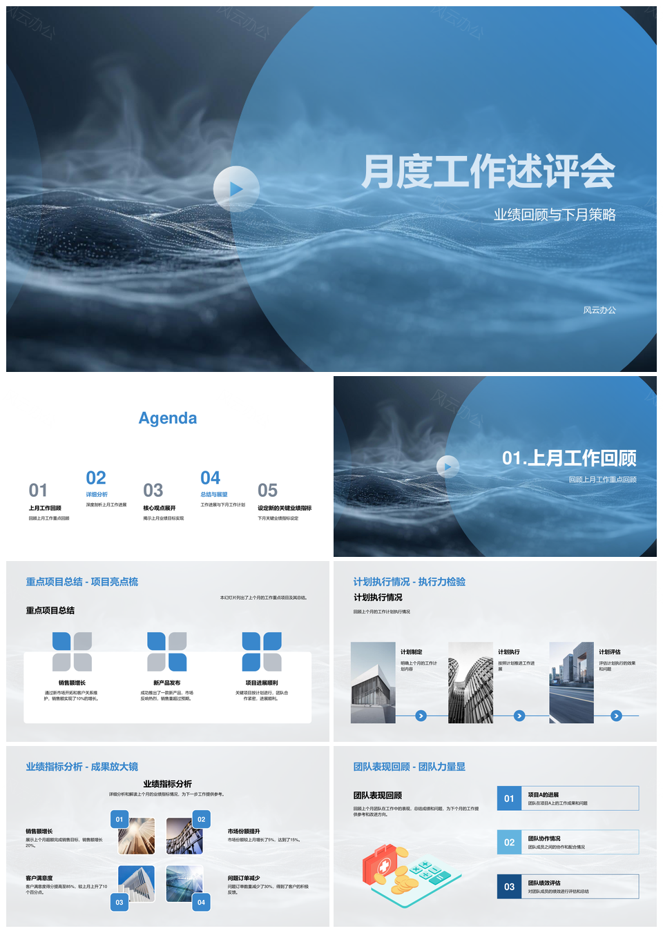 风云办公提供的部门经理月度述评会业绩回顾下月策略PPT模板,下载格式为pptx,一共33页,作品中文字及图均可以修改和编辑,图片更改请在作品中右键图片并更换,文字修改请直接点击文字进行修改。