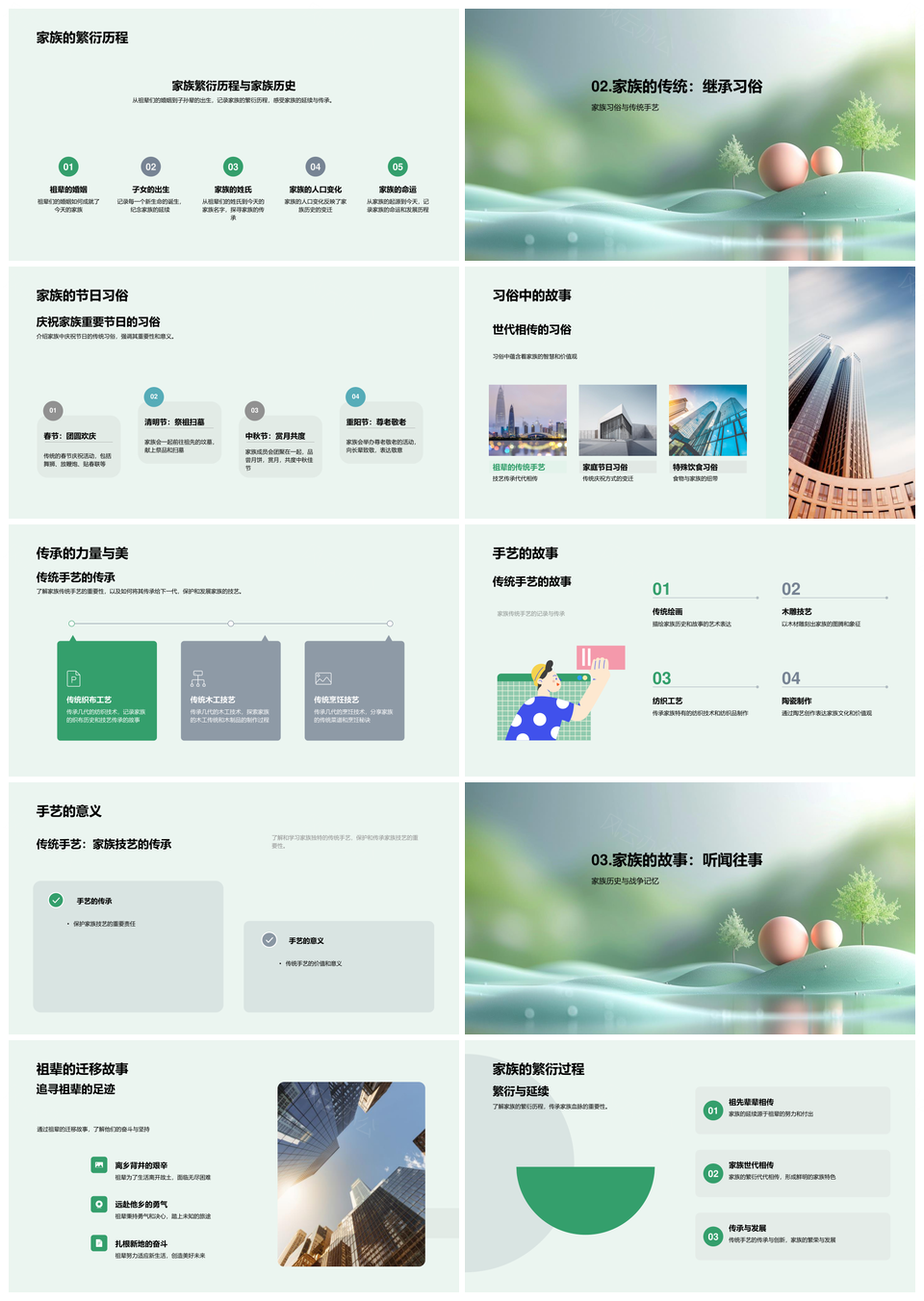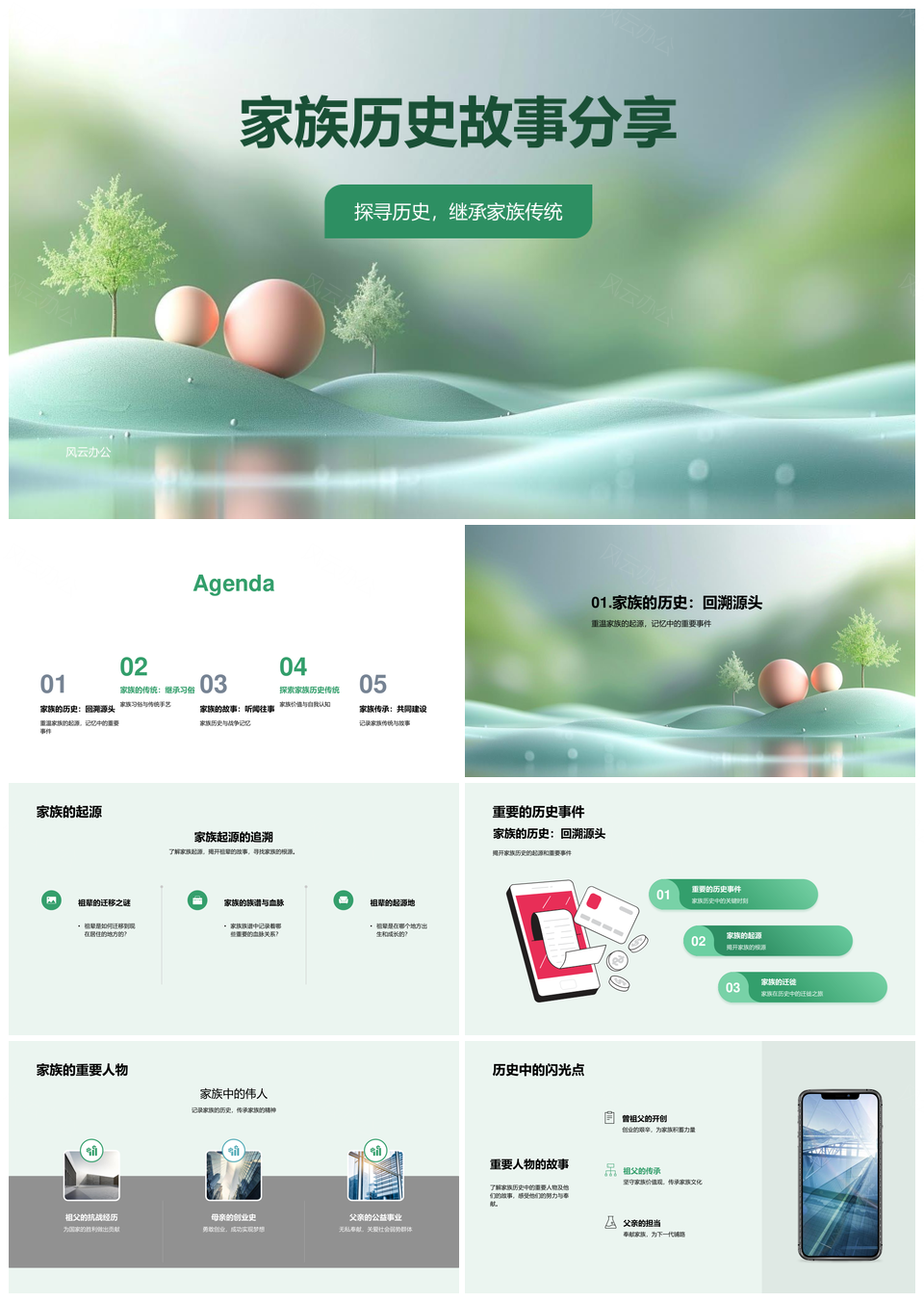 这是一张家族团聚探寻起源传承历史人物事件故事PPT模板,包含家族团聚、探寻、起源、传承、历史人物、事件、故事等主题内容,也可用作家族团聚探寻起源、团聚探寻起源传承、探寻起源传承历史、起源传承历史人物、传承历史人物事件、历史人物事件故事、家族团聚探寻起源、团聚探寻起源传承、探寻起源传承历史、起源传承历史人物、传承历史人物事件、历史人物事件故事、家族团聚起源、探寻传承历史、传承故事等PPT场景使用。 风云办公提供的家族团聚探寻起源传承历史人物事件故事PPT模板,下载格式为pptx,一共33页,作品中文字及图均可以修改和编辑,图片更改请在作品中右键图片并更换,文字修改请直接点击文字进行修改。