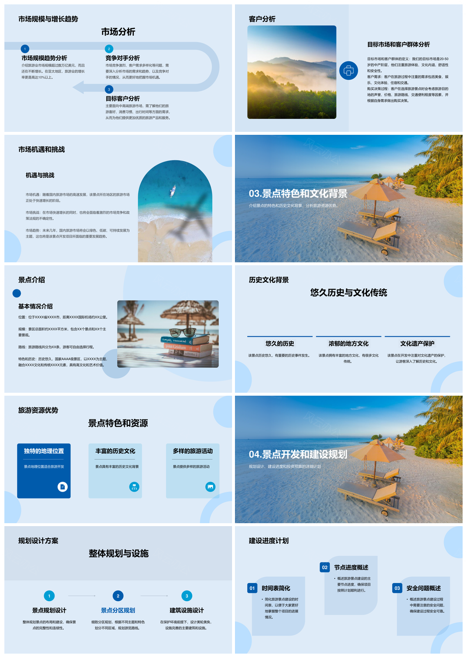 风云办公提供的蓝色旅游度假景点开发商业计划书PPT模板,下载格式为pptx,一共27页,作品中文字及图均可以修改和编辑,图片更改请在作品中右键图片并更换,文字修改请直接点击文字进行修改。