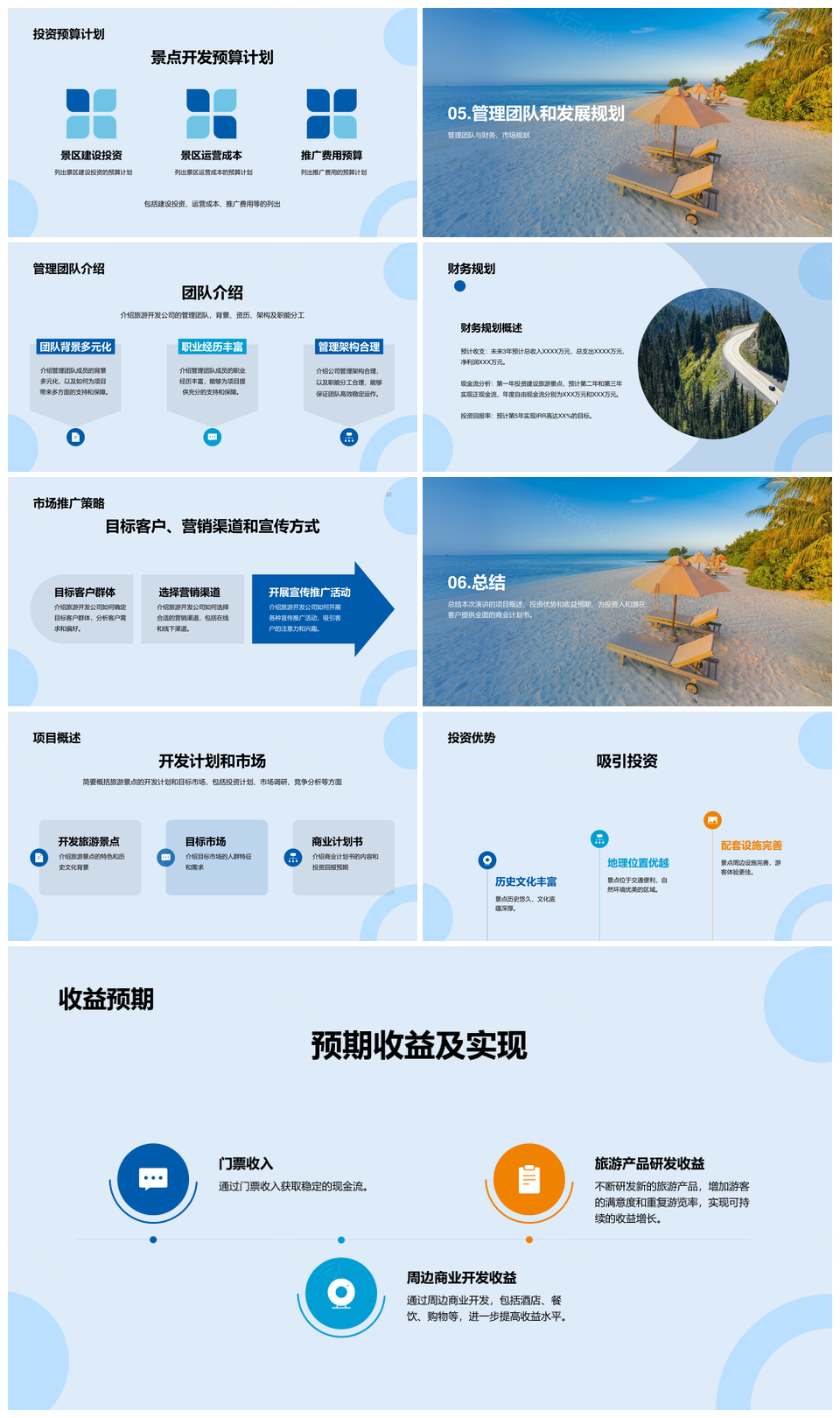 这是一张蓝色旅游度假景点开发商业计划书PPT模板,包含蓝色、旅游、度假、景点、开发、商业计划书等主题内容,也可用作蓝色旅游度假景点、旅游度假景点开发、蓝色旅游景点开发、景点开发商业计划书、蓝色旅游商业计划书、旅游度假商业计划书、蓝色旅游度假、旅游度假景点、度假景点开发、开发商业计划书、蓝色旅游景点、旅游景点开发、蓝色旅游开发、蓝色旅游、旅游度假等PPT场景使用。