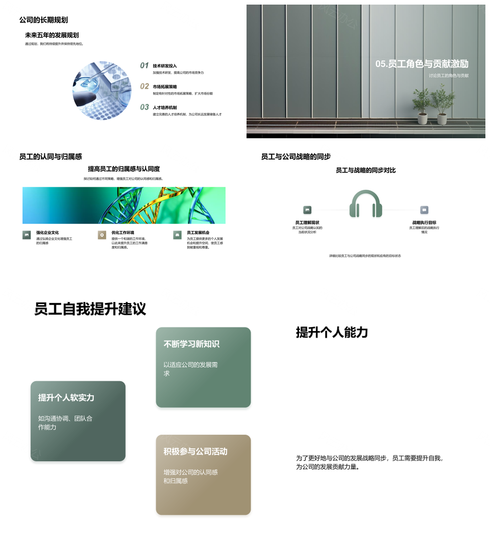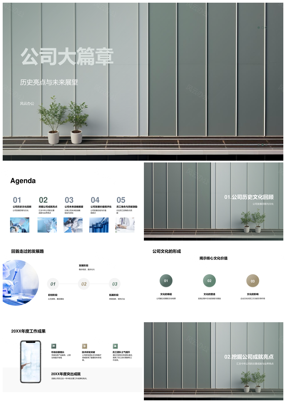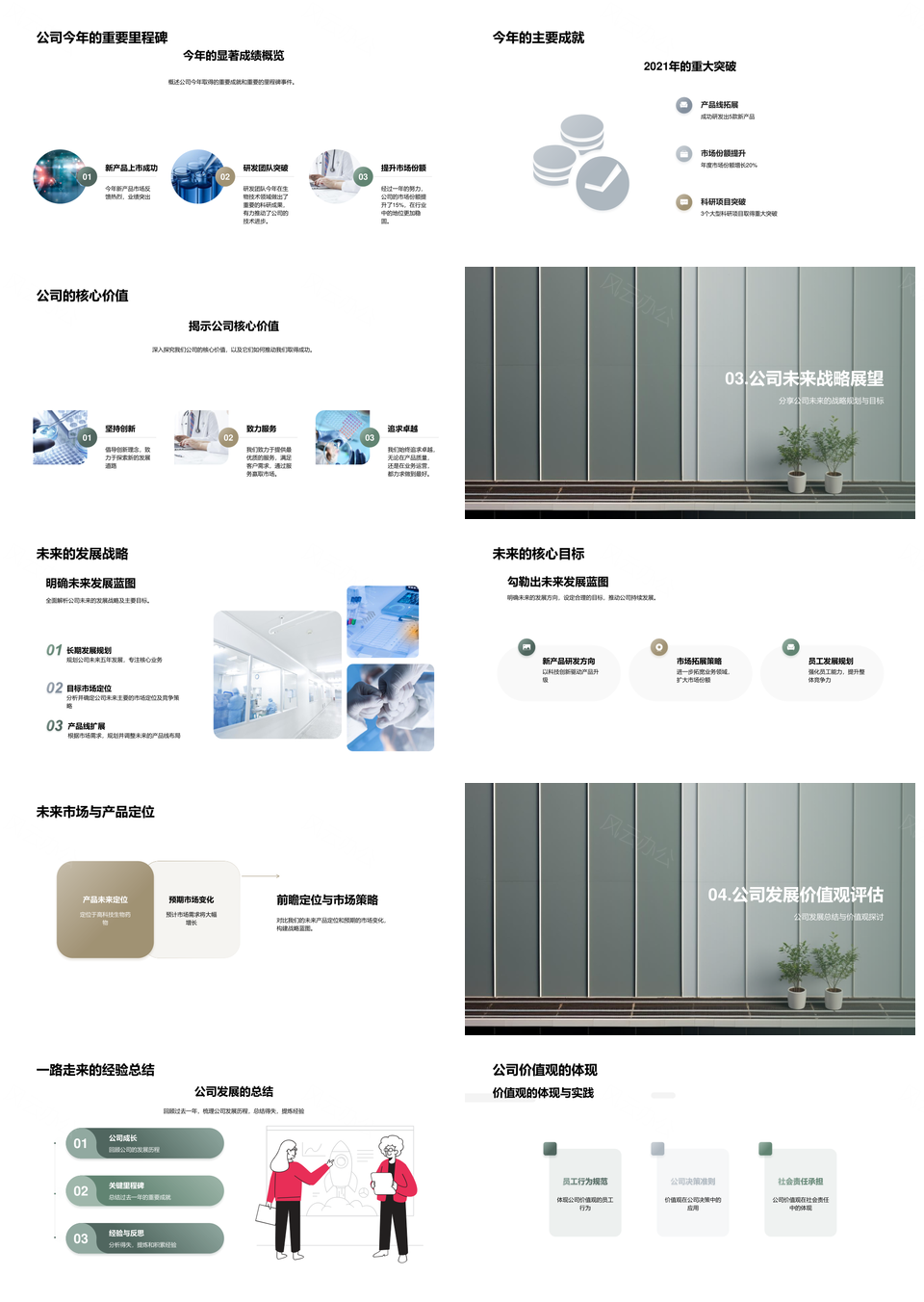 这是一张公司发展历程文化成就与未来战略价值观亮点PPT模板,包含公司、发展历程、文化成就、未来战略、价值观、亮点等主题内容,也可用作公司发展历程文化成就、发展历程文化成就未来、历程文化成就未来战略、文化成就未来战略价值观、成就未来战略价值观亮点、公司发展历程文化、发展历程文化成就、历程文化成就未来、文化成就未来战略、成就未来战略价值观、未来战略价值观亮点、公司发展历程、发展历程文化、文化成就未来、未来战略价值观等PPT场景使用。 风云办公提供的公司发展历程文化成就与未来战略价值观亮点PPT模板,下载格式为pptx,一共23页,作品中文字及图均可以修改和编辑,图片更改请在作品中右键图片并更换,文字修改请直接点击文字进行修改。