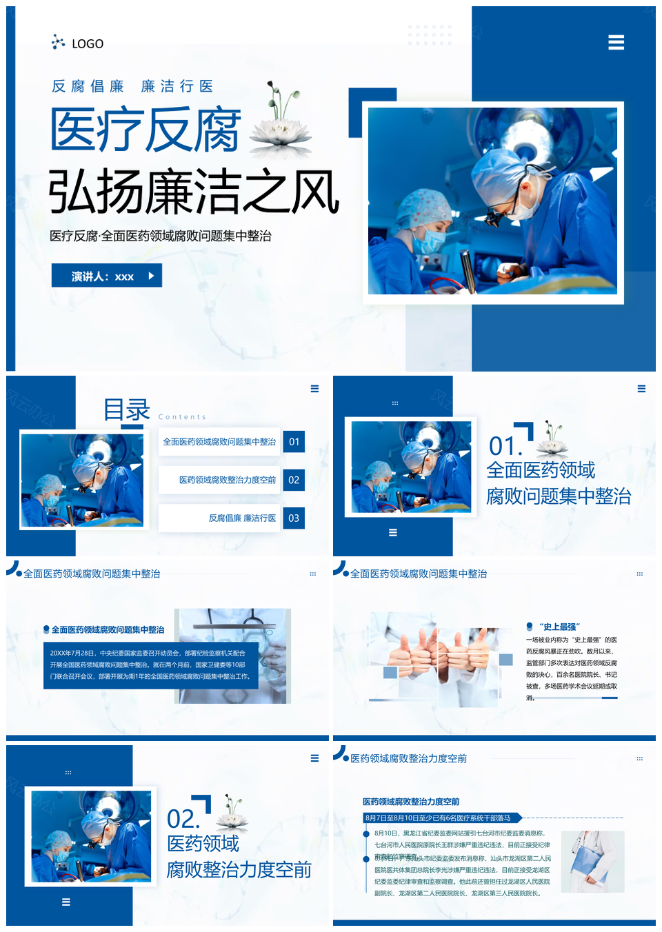 2023医疗反腐廉洁行医医院廉政教育党课PPT模板推荐