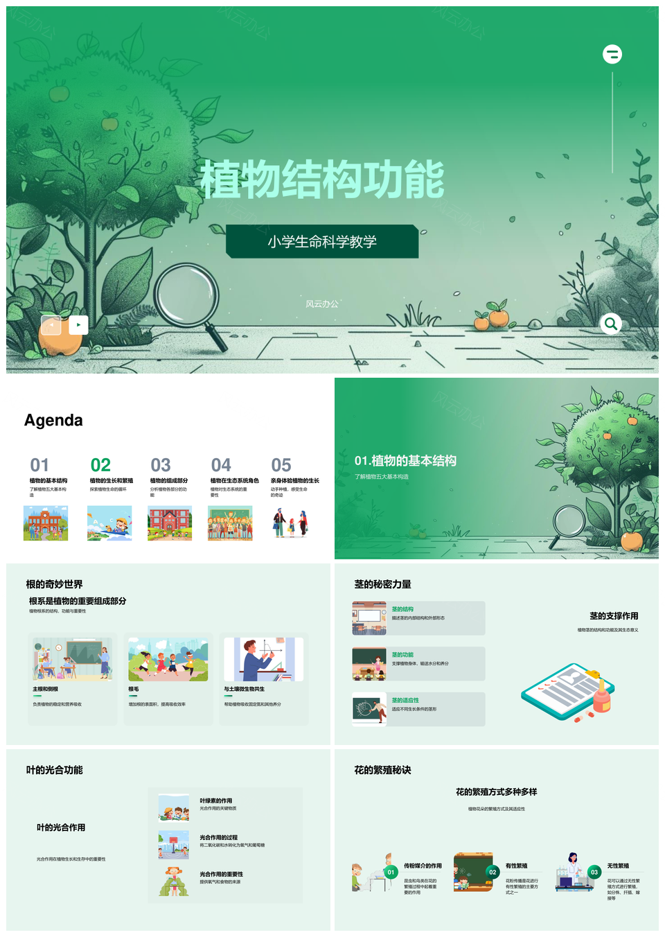 这是一张植物根茎叶结构功能生长繁殖养分小学教学PPT模板,包含根茎叶、结构、功能、生长、繁殖、养分、小学教学等主题内容,也可用作植物根茎叶结构、根茎叶结构功能、茎叶结构功能、叶结构功能生长、结构功能生长繁殖、功能生长繁殖养分、生长繁殖养分教学、繁殖养分小学教学、植物根茎叶结构功能、根茎叶结构功能生长、茎叶结构功能生长繁殖、叶结构功能生长繁殖养分、结构功能生长繁殖养分小学、功能生长繁殖养分小学教学、植物根茎叶等PPT场景使用。 风云办公提供的植物根茎叶结构功能生长繁殖养分小学教学PPT模板,下载格式为pptx,一共33页,作品中文字及图均可以修改和编辑,图片更改请在作品中右键图片并更换,文字修改请直接点击文字进行修改。