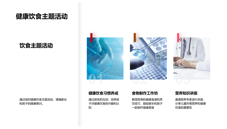 这是一张医生谈儿童饮食健康营养均衡防常见疾病PPT模板,包含医生、儿童、饮食、健康、营养、均衡、常见、疾病等主题内容,也可用作医生儿童饮食健康、儿童饮食健康营养、饮食健康营养均衡、健康营养均衡常见、营养均衡常见疾病、儿童饮食健康、饮食健康营养、健康营养均衡、营养均衡常见、均衡常见疾病、儿童饮食、饮食健康、健康营养、营养均衡、常见疾病等PPT场景使用。 风云办公提供的医生谈儿童饮食健康营养均衡防常见疾病PPT模板,下载格式为pptx,一共19页,作品中文字及图均可以修改和编辑,图片更改请在作品中右键图片并更换,文字修改请直接点击文字进行修改。