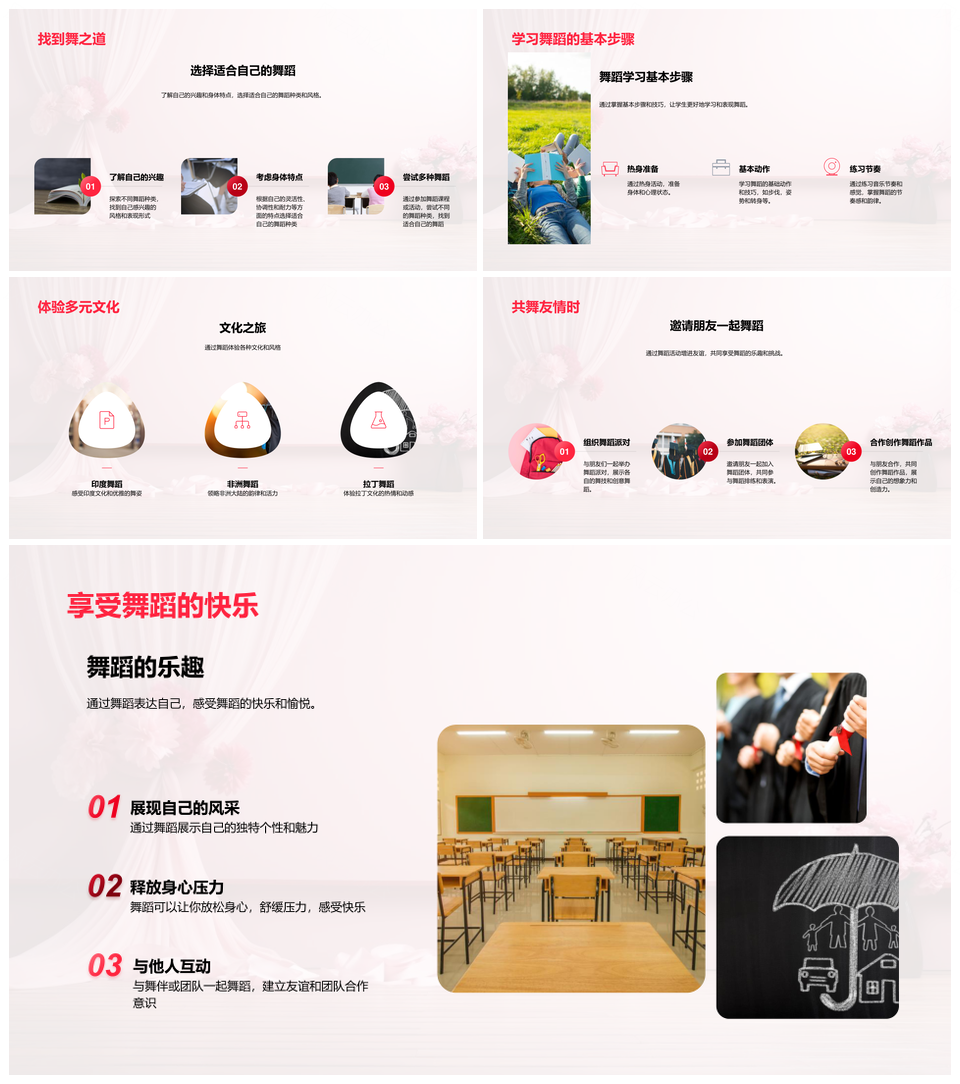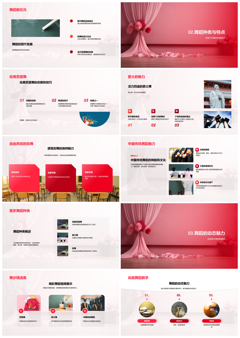 2025舞蹈教学PPT模板动作标准分类表演技巧艺术文化历史训练视频展示