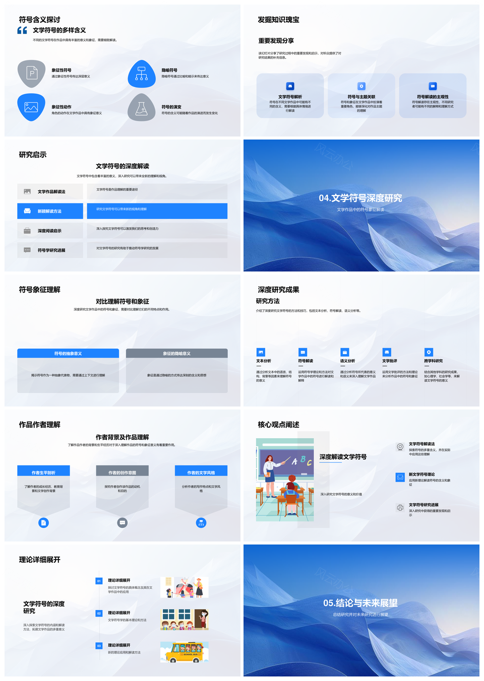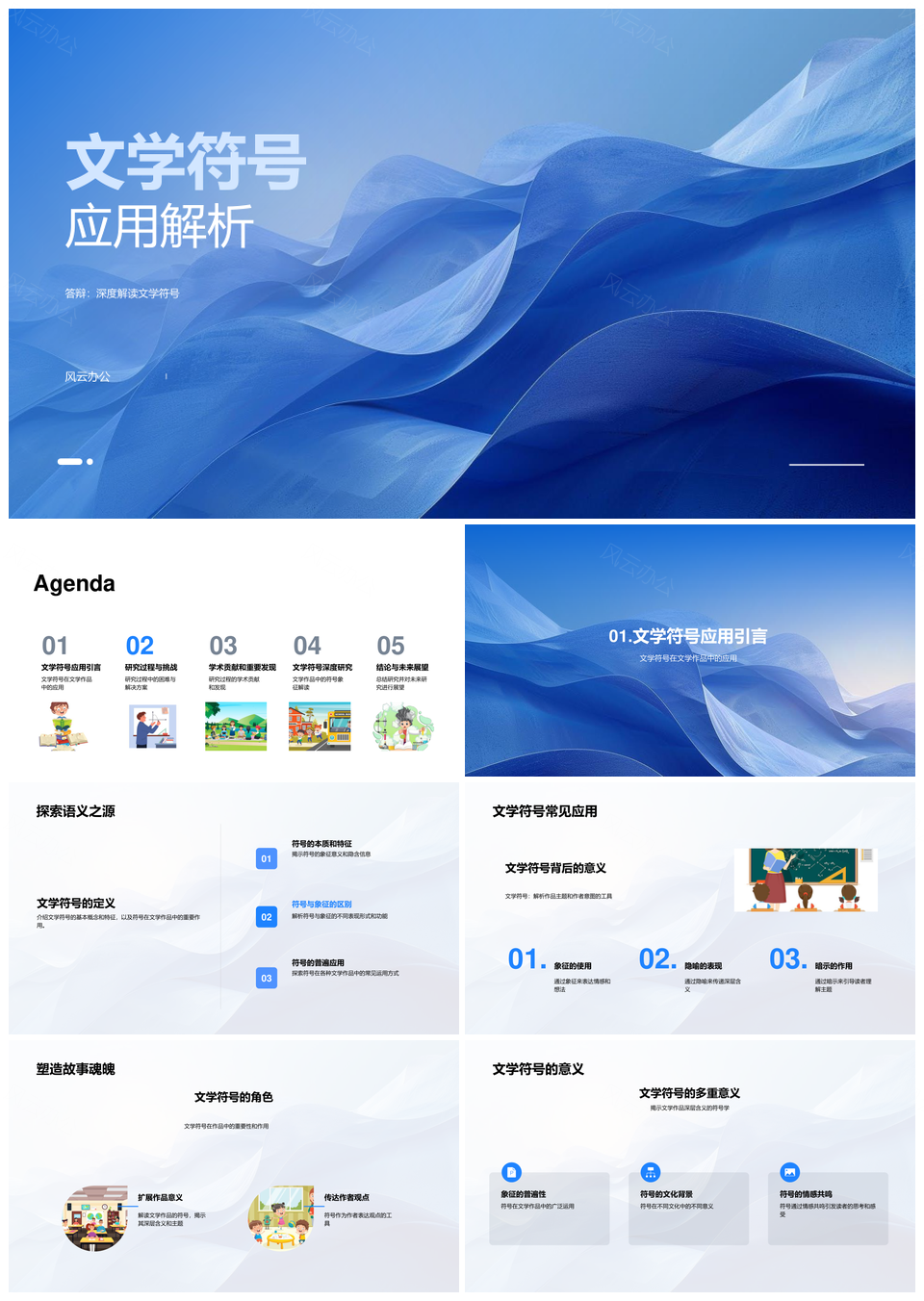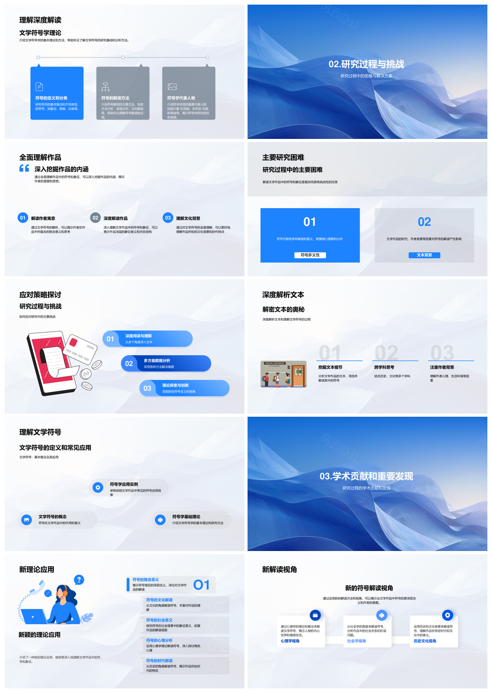 风云办公提供的文学符号学学术答辩深度解析研究PPT模板,下载格式为pptx,一共33页,作品中文字及图均可以修改和编辑,图片更改请在作品中右键图片并更换,文字修改请直接点击文字进行修改。