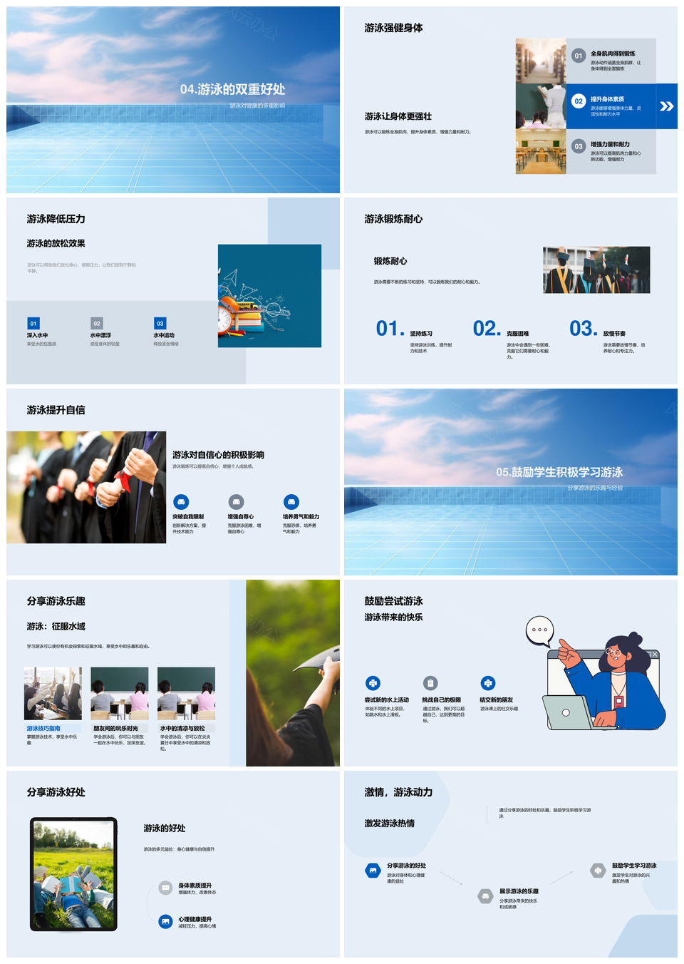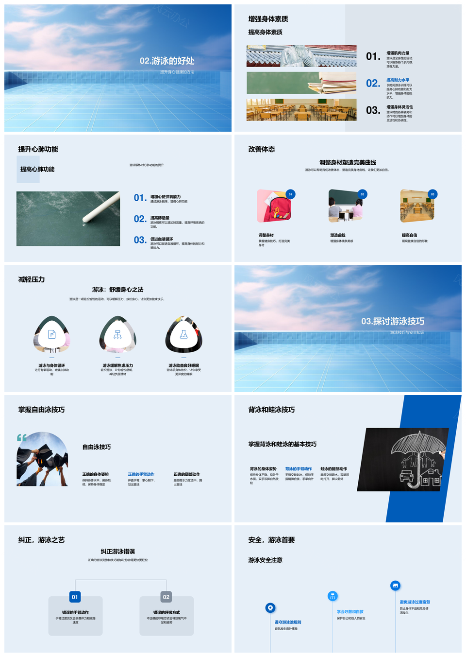 这是一张游泳乐学技巧强身益心肺健体PPT模板,包含游泳、乐学、技巧、强身、益心肺、健体等主题内容,也可用作游泳乐学技巧强身、乐学技巧强身益心、技巧强身益心健体、游泳乐学技巧、乐学技巧强身、技巧强身益心、强身益心健体、游泳乐学、乐学技巧、技巧强身、强身益心、益心健体、游泳技巧强身健体、乐学强身益心健体、游泳技巧强身益心等PPT场景使用。