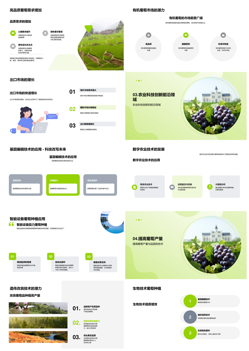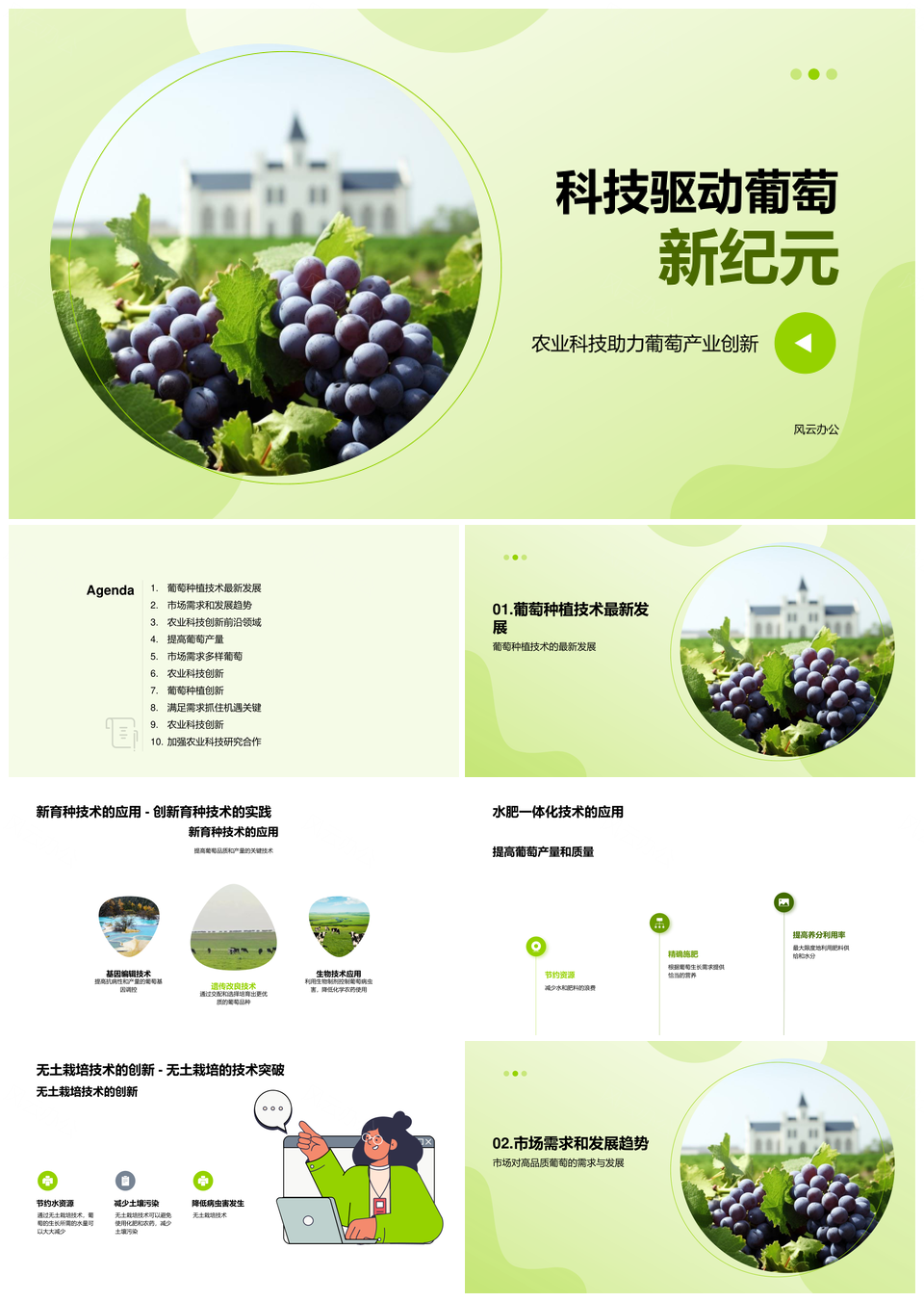 风云办公提供的科技驱动葡萄肥一体无土栽培拓出口PPT模板,下载格式为pptx,一共43页,作品中文字及图均可以修改和编辑,图片更改请在作品中右键图片并更换,文字修改请直接点击文字进行修改。