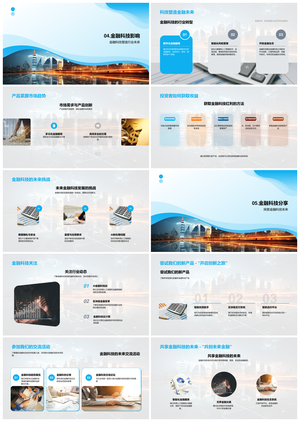 风云办公提供的金融科技人工智能区块链驱动未来城市PPT模板,下载格式为pptx,一共28页,作品中文字及图均可以修改和编辑,图片更改请在作品中右键图片并更换,文字修改请直接点击文字进行修改。
