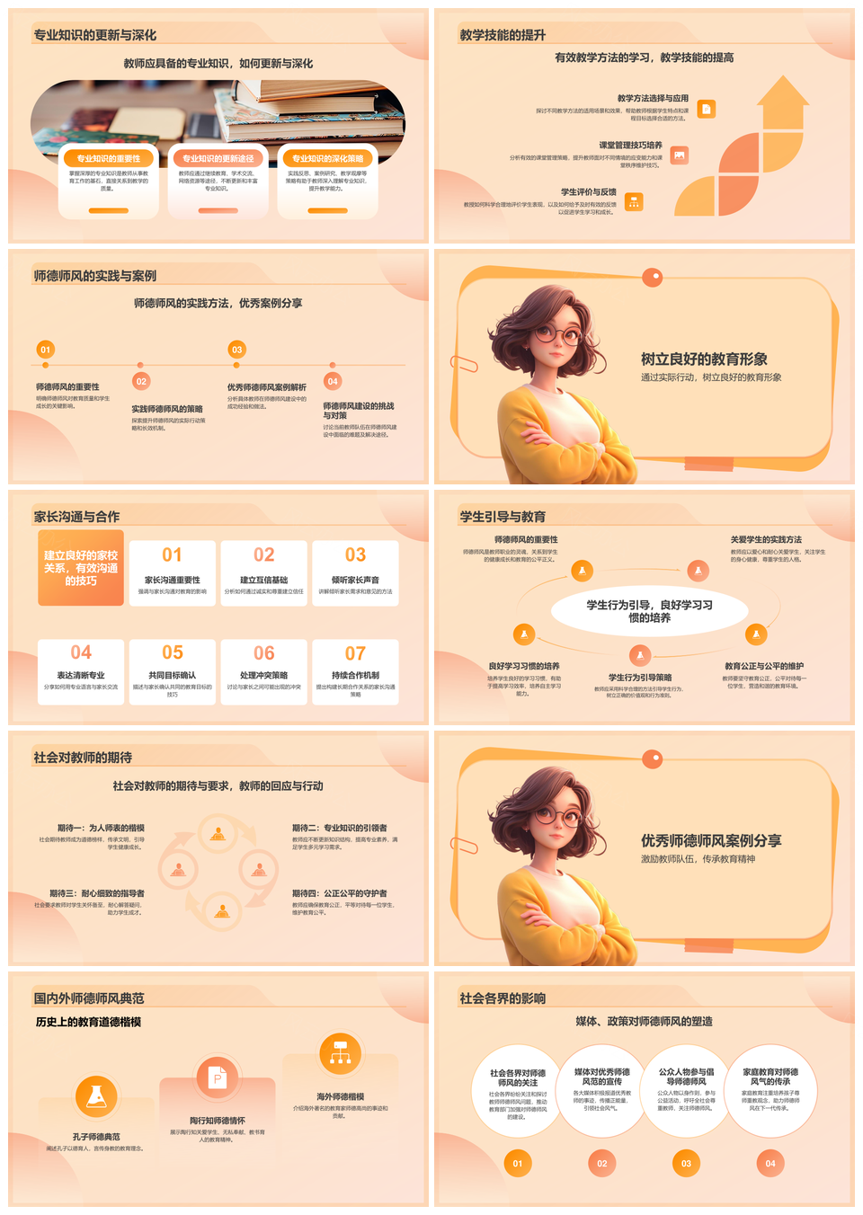 风云办公提供的师德师风教师节演讲交流共促教育发展PPT模板,下载格式为pptx,一共19页,作品中文字及图均可以修改和编辑,图片更改请在作品中右键图片并更换,文字修改请直接点击文字进行修改。