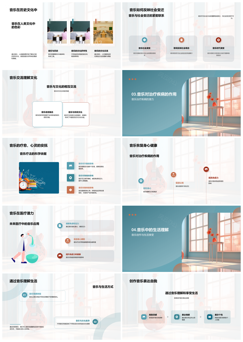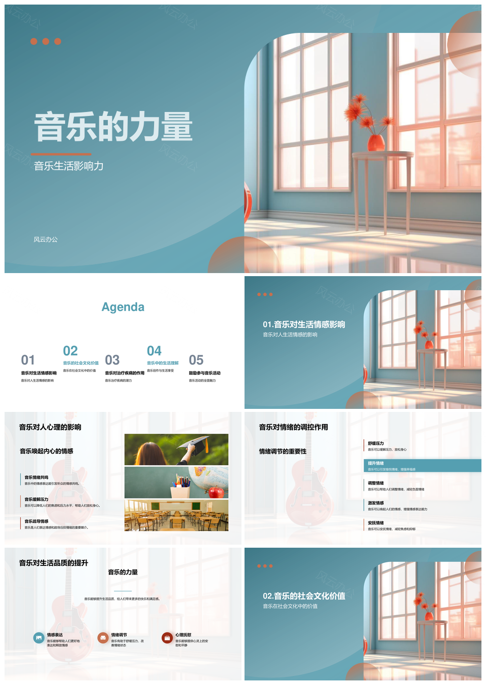 风云办公提供的音乐符号力量彰显生活影响PPT模板,下载格式为pptx,一共23页,作品中文字及图均可以修改和编辑,图片更改请在作品中右键图片并更换,文字修改请直接点击文字进行修改。