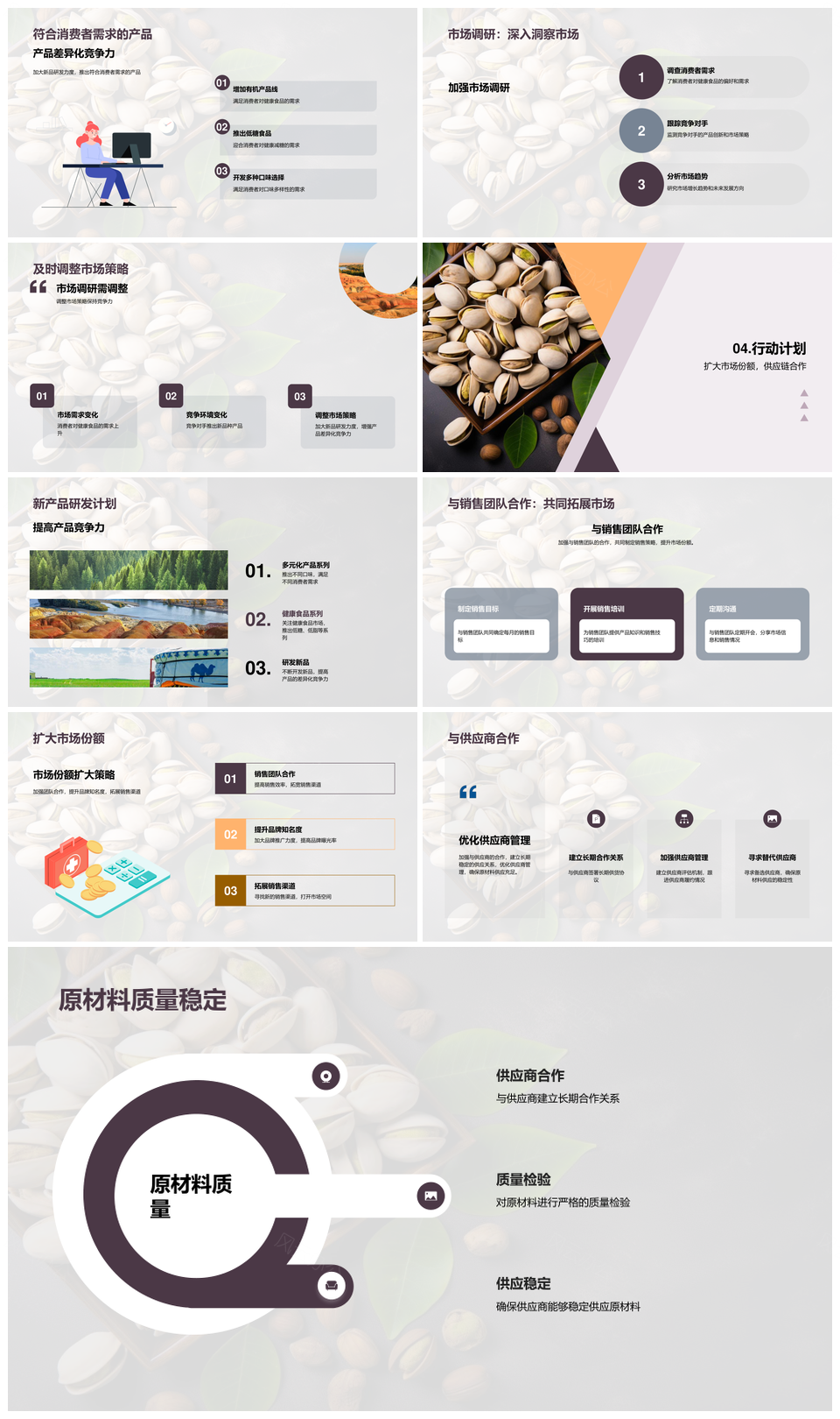 这是一张水果坚果加工月度市场规模增长竞争分析PPT模板,包含水果、坚果、加工、月度、市场规模、增长、竞争、分析等主题内容,也可用作水果坚果加工月度市场、水果坚果加工市场规模、水果坚果加工增长分析、坚果加工月度市场、月度市场规模增长竞争、加工月度市场规模、市场规模增长竞争分析、水果坚果市场竞争、水果加工规模增长、坚果加工竞争分析、月度增长竞争分析、水果加工市场、坚果规模增长、市场规模竞争、竞争分析增长等PPT场景使用。 风云办公提供的水果坚果加工月度市场规模增长竞争分析PPT模板,下载格式为pptx,一共27页,作品中文字及图均可以修改和编辑,图片更改请在作品中右键图片并更换,文字修改请直接点击文字进行修改。