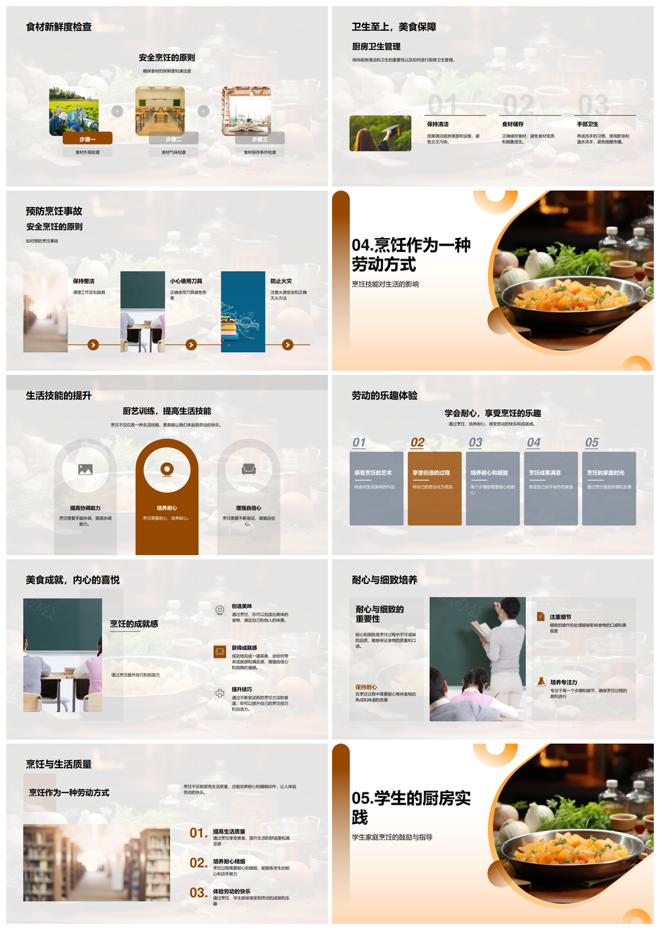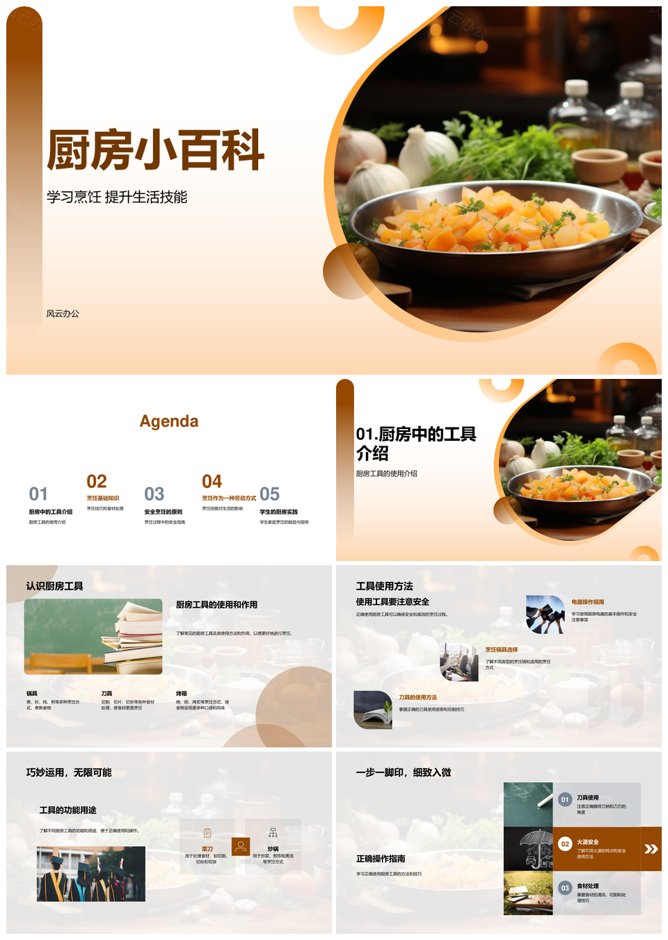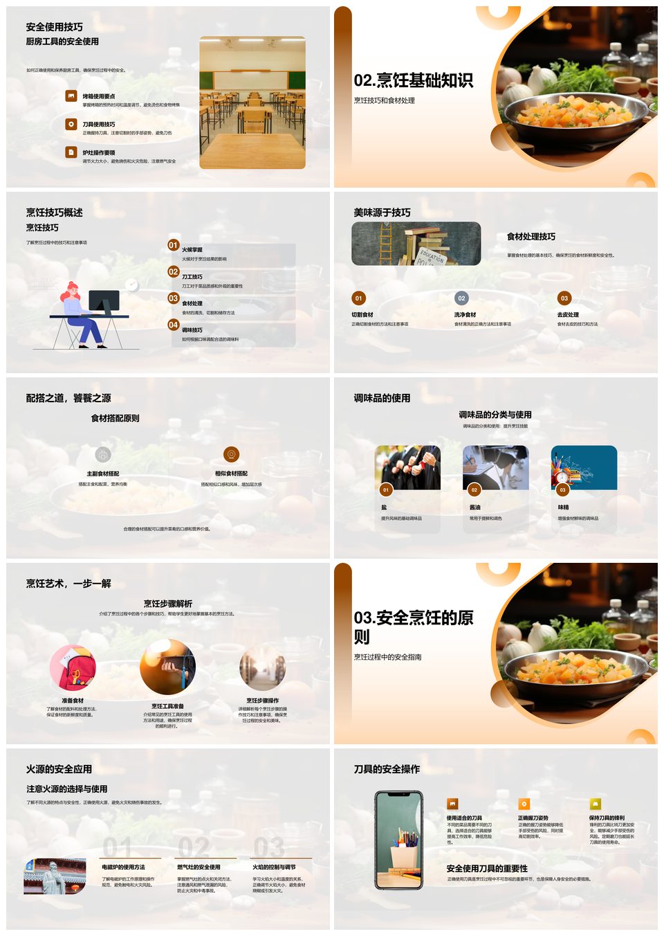 风云办公提供的厨艺技巧食材处理工具安全配搭调味PPT模板,下载格式为pptx,一共33页,作品中文字及图均可以修改和编辑,图片更改请在作品中右键图片并更换,文字修改请直接点击文字进行修改。