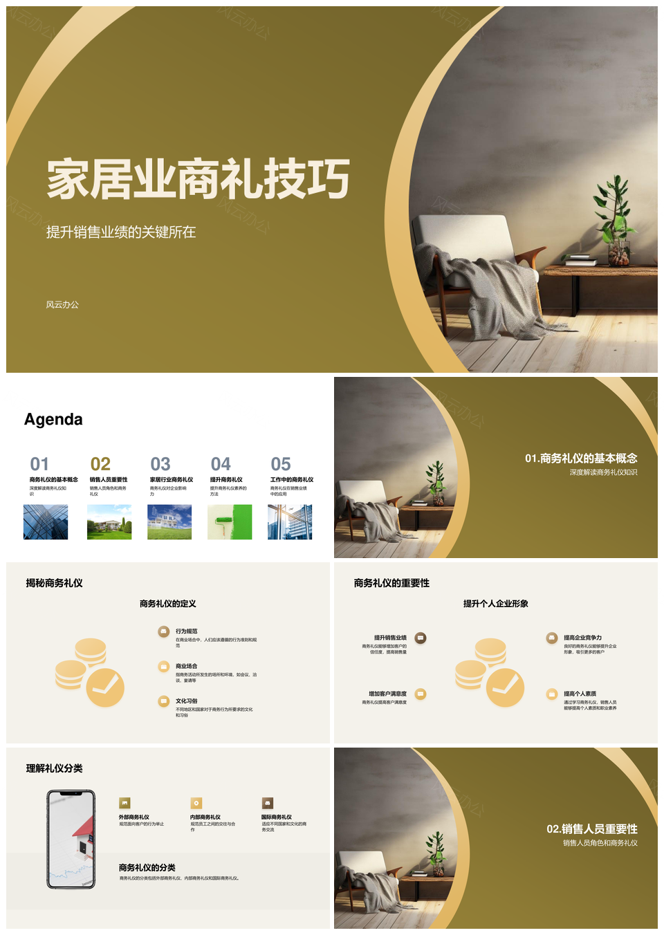 风云办公提供的家居销售商务礼仪技巧提升业绩形象PPT模板,下载格式为pptx,一共23页,作品中文字及图均可以修改和编辑,图片更改请在作品中右键图片并更换,文字修改请直接点击文字进行修改。