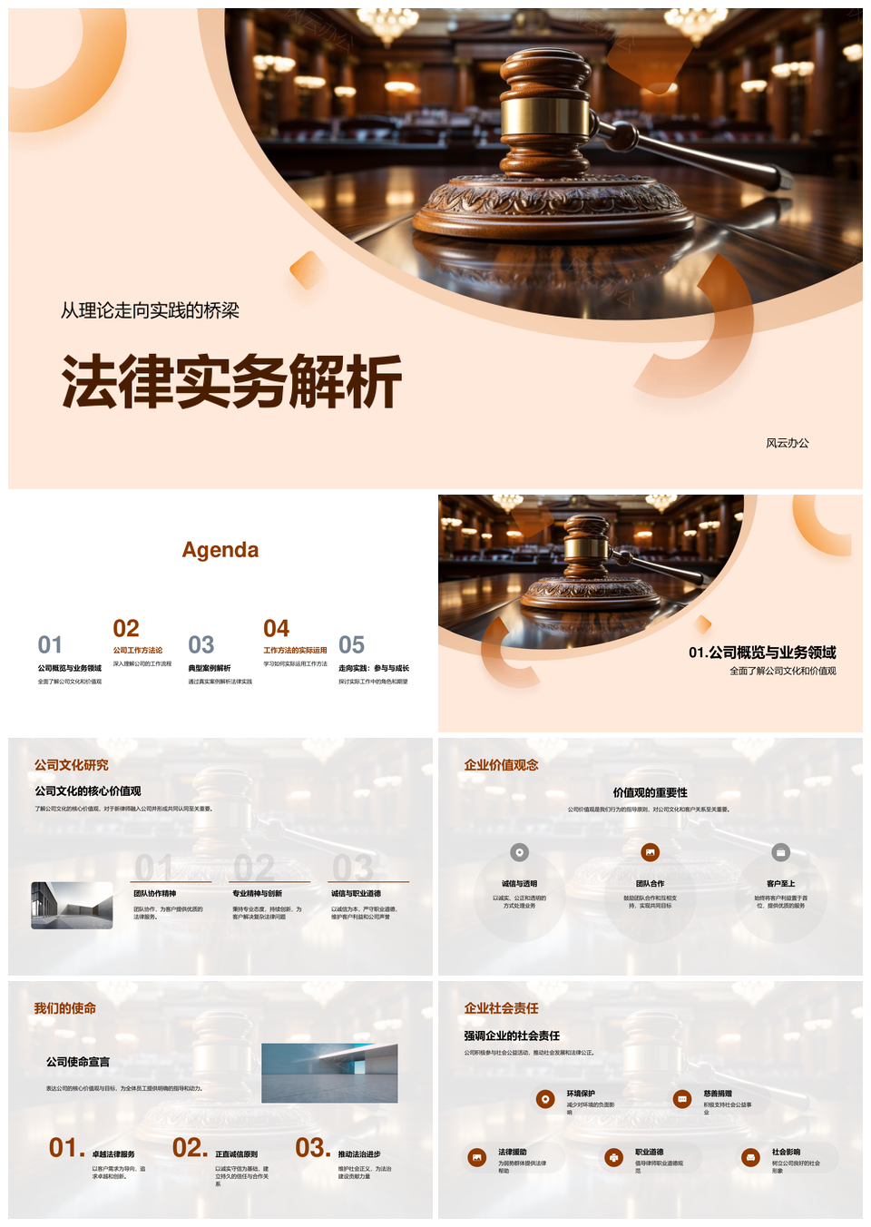 法律实务公司文化业务案件合同法槌解析PPT模板推荐