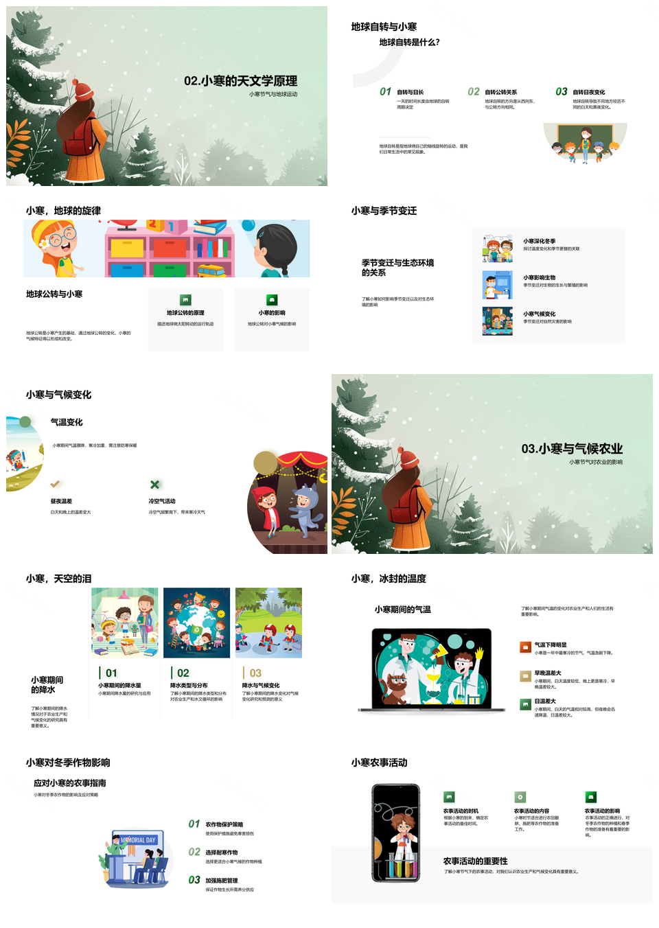 小寒节气农业气候与地球公转季节农事文化PPT模板推荐