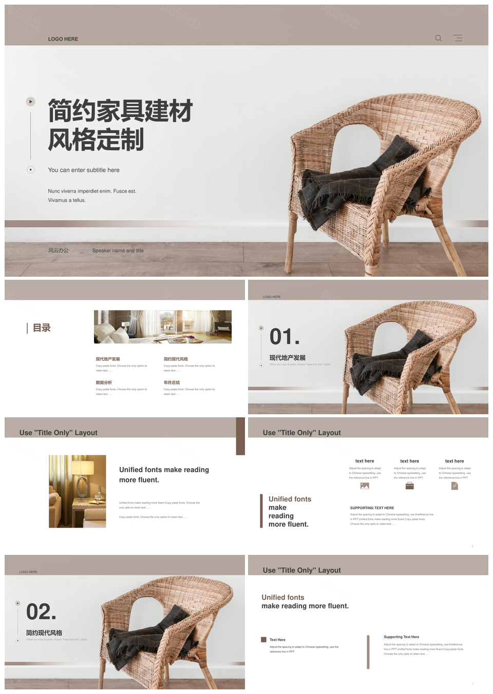 风云办公提供的灰色北欧家具商务简约大地色PPT模板,下载格式为pptx,一共15页,作品中文字及图均可以修改和编辑,图片更改请在作品中右键图片并更换,文字修改请直接点击文字进行修改。