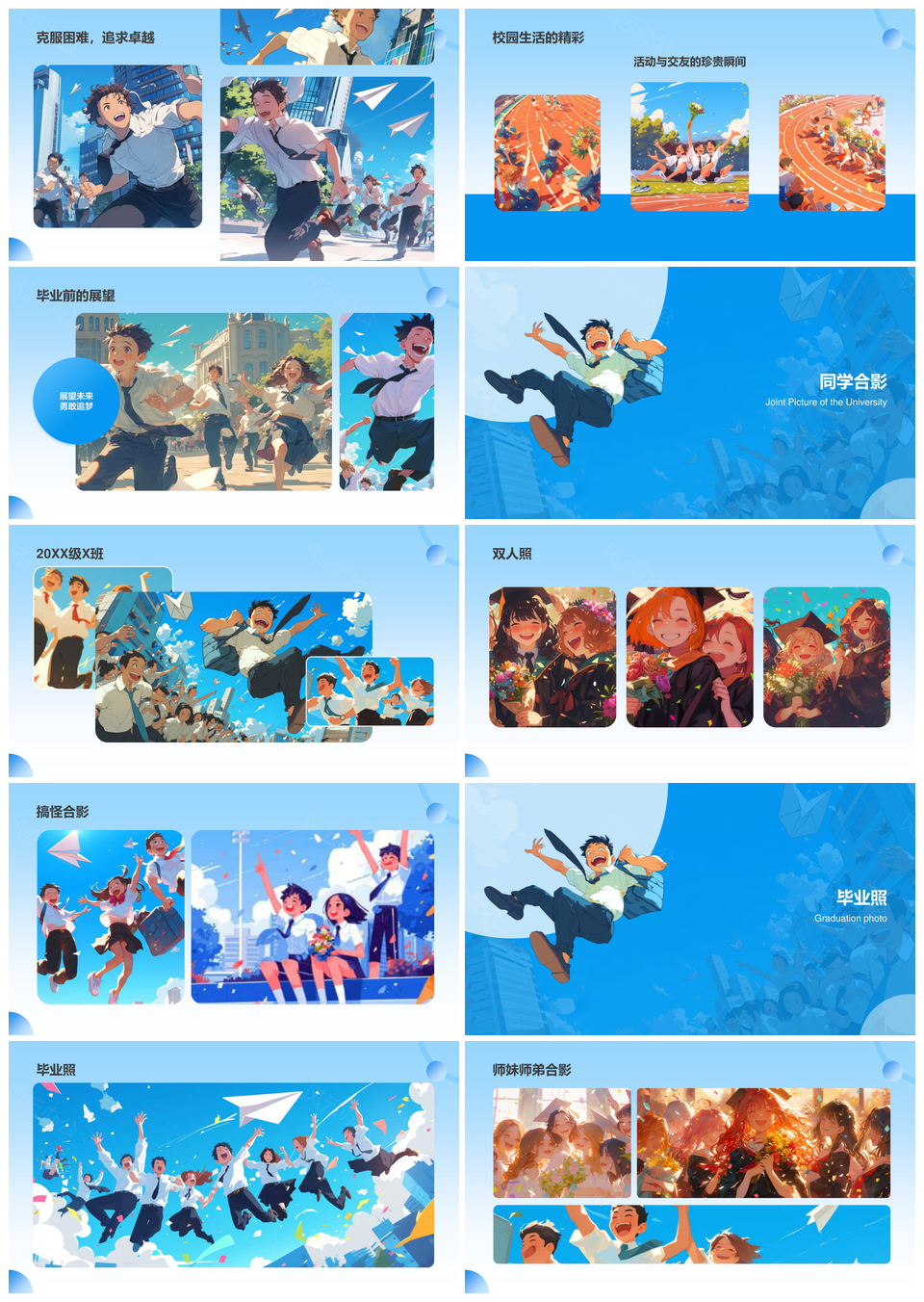风云办公提供的大学毕业纪念相册学习成长结束PPT模板,下载格式为pptx,一共19页,作品中文字及图均可以修改和编辑,图片更改请在作品中右键图片并更换,文字修改请直接点击文字进行修改。