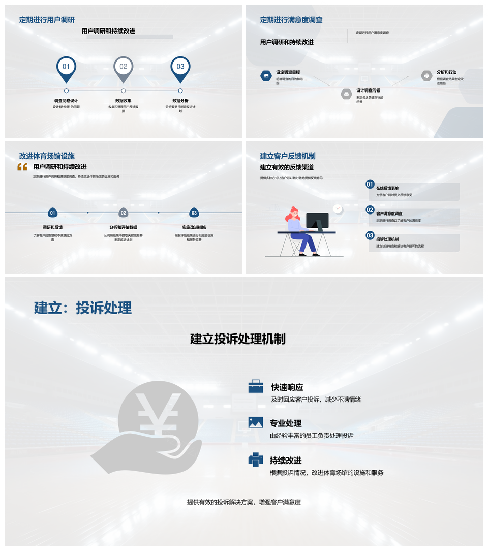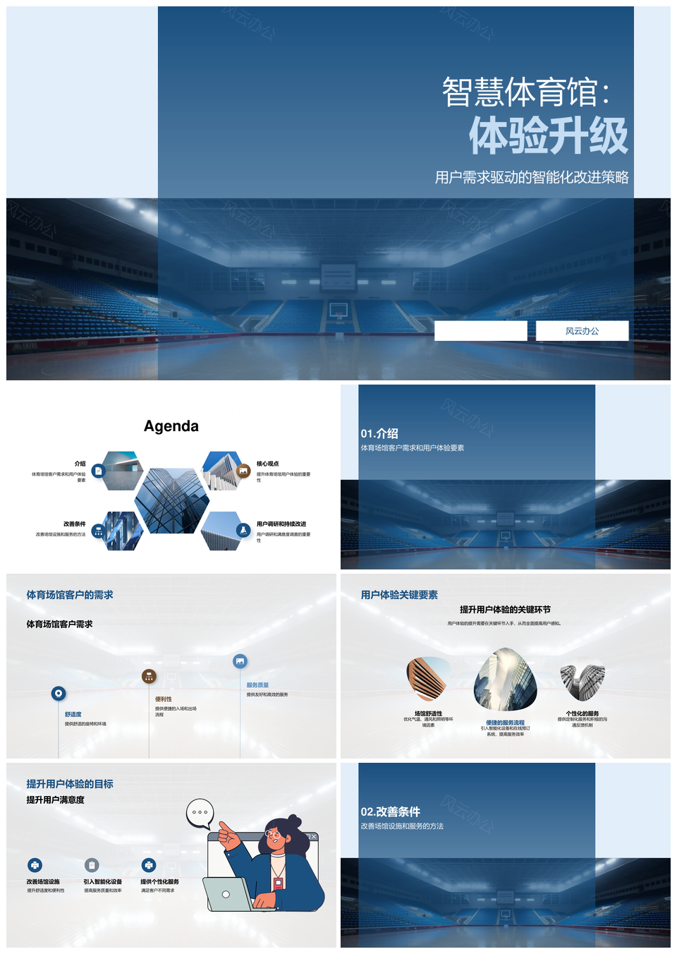 这是一张智慧体育馆用户体验优化提升舒适便利服务PPT模板,包含智慧体育馆、用户体验、优化、提升、舒适、便利、服务等主题内容,也可用作智慧体育馆用户体验优化、智慧体育馆用户体验提升、智慧体育馆优化提升舒适、体育馆用户体验优化提升、用户体验优化提升舒适、优化提升舒适便利服务、智慧体育馆舒适便利服务、用户体验优化舒适便利、提升舒适便利服务、智慧体育馆用户体验、体育馆用户体验优化、用户体验优化提升、优化提升舒适便利、体育馆舒适便利服务、舒适便利服务等PPT场景使用。 风云办公提供的智慧体育馆用户体验优化提升舒适便利服务PPT模板,下载格式为pptx,一共23页,作品中文字及图均可以修改和编辑,图片更改请在作品中右键图片并更换,文字修改请直接点击文字进行修改。