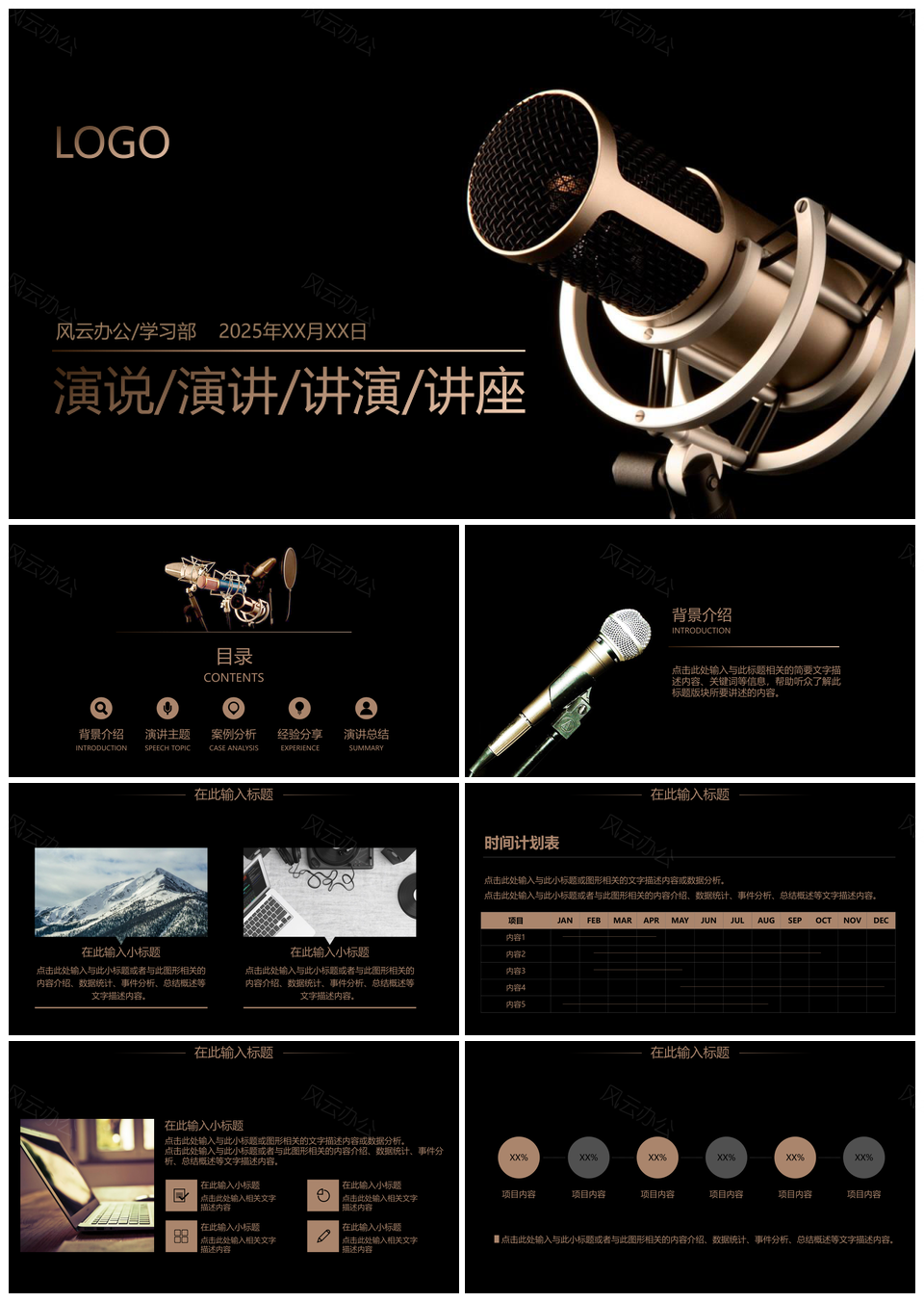 风云办公提供的2025黑色大气演讲演说讲座通用PPT模板,下载格式为pptx,一共27页,作品中文字及图均可以修改和编辑,图片更改请在作品中右键图片并更换,文字修改请直接点击文字进行修改。