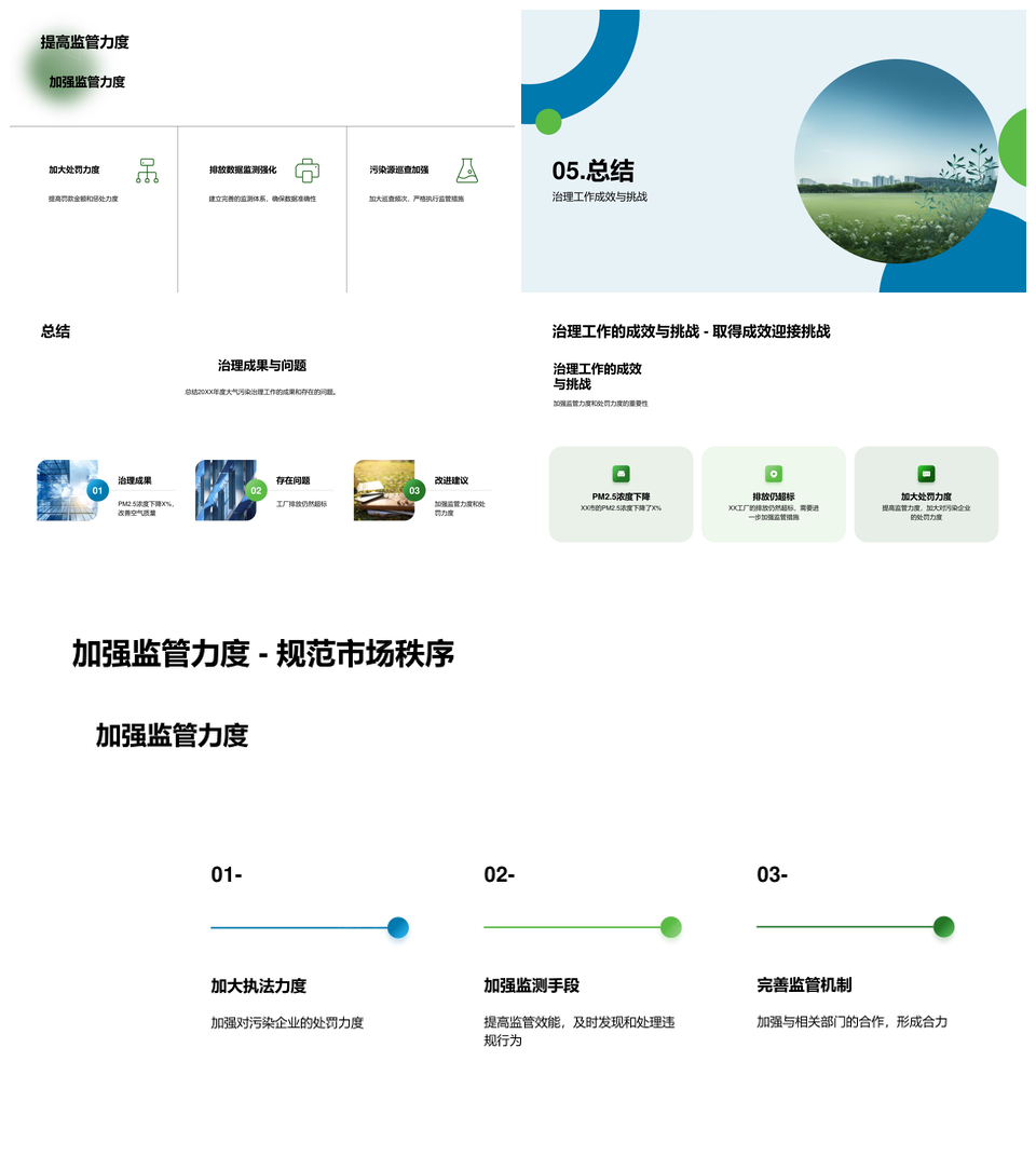 这是一张20XX环保部门大气污染治理总结与计划PPT模板,包含20XX、环保部门、大气污染治理、总结、计划等主题内容,也可用作环保部门大气污染治理总结、环保部门大气污染治理计划、20XX环保部门大气污染治理、环保部门大气污染治理、大气污染治理总结、大气污染治理计划、环保部门治理总结、环保部门治理计划、20XX大气污染治理、20XX环保部门治理、20XX治理总结、20XX治理计划、大气污染治理、治理计划、环保部门总结等PPT场景使用。 风云办公提供的20XX环保部门大气污染治理总结与计划PPT模板,下载格式为pptx,一共23页,作品中文字及图均可以修改和编辑,图片更改请在作品中右键图片并更换,文字修改请直接点击文字进行修改。