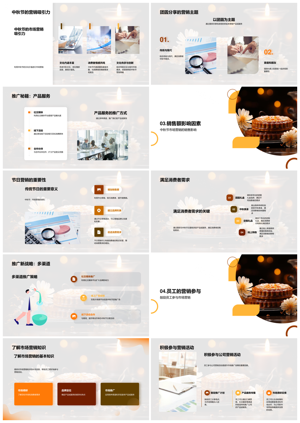 这是一张中秋文化内涵社交媒体月饼销售多渠道推广策略PPT模板,包含中秋、文化、内涵、社交媒体、月饼、销售、多渠道、推广、策略等主题内容,也可用作中秋文化内涵社交媒体、社交媒体月饼销售多渠道、月饼销售多渠道推广策略、中秋文化月饼销售多渠道、文化内涵社交媒体多渠道推广、多渠道推广策略中秋文化、社交媒体多渠道推广策略、中秋月饼销售多渠道推广、文化内涵月饼销售策略、中秋文化社交媒体推广、月饼销售多渠道策略、社交媒体推广策略中秋、中秋月饼推广多渠道、文化内涵多渠道策略、社交媒体月饼销售策略等PPT场景使用。 风云办公提供的中秋文化内涵社交媒体月饼销售多渠道推广策略PPT模板,下载格式为pptx,一共23页,作品中文字及图均可以修改和编辑,图片更改请在作品中右键图片并更换,文字修改请直接点击文字进行修改。