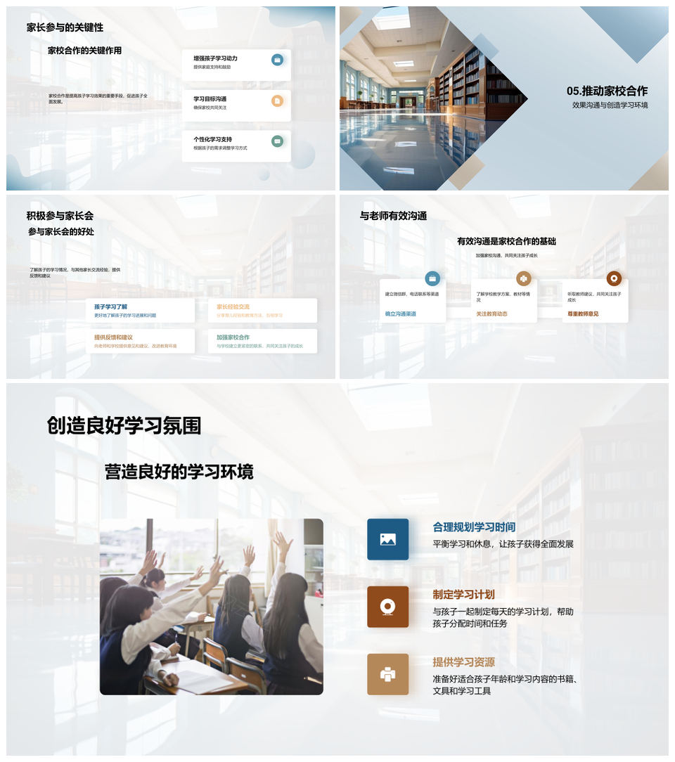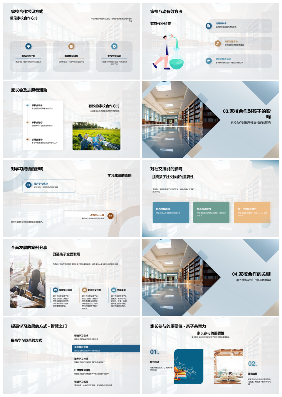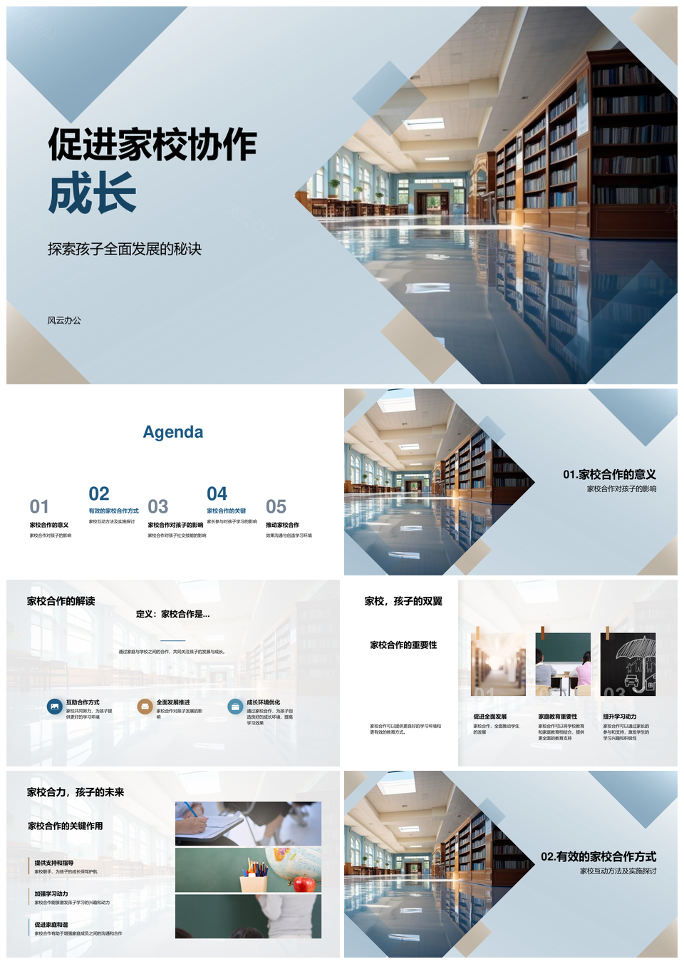 风云办公提供的家校合作共促孩子全面发展教育PPT模板,下载格式为pptx,一共23页,作品中文字及图均可以修改和编辑,图片更改请在作品中右键图片并更换,文字修改请直接点击文字进行修改。