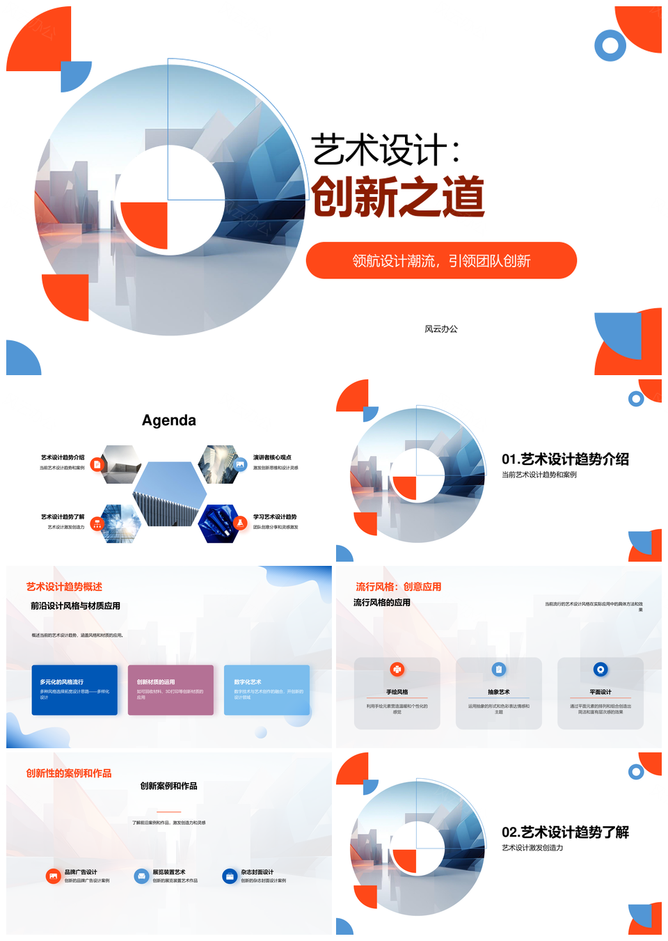 风云办公提供的艺术设计创新趋势前沿几何材质应用PPT模板,下载格式为pptx,一共21页,作品中文字及图均可以修改和编辑,图片更改请在作品中右键图片并更换,文字修改请直接点击文字进行修改。