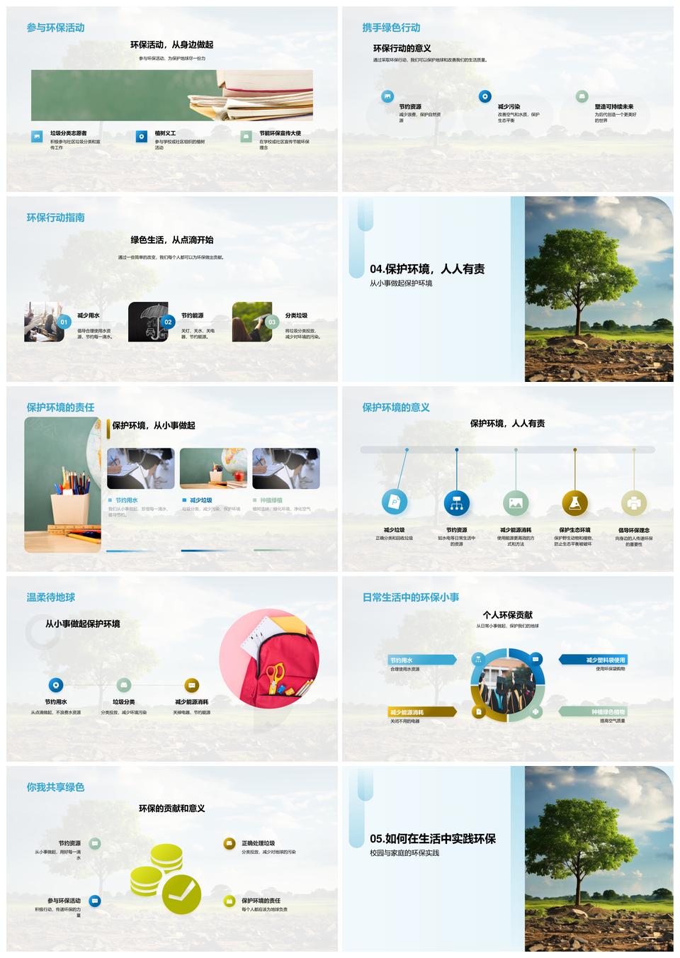 这是一张环保责任教育行动共护环境节约资源处理垃圾PPT模板,包含环保责任、教育行动、共护环境、节约资源、处理垃圾等主题内容,也可用作环保责任教育行动、共护环境节约资源处理、环保责任教育、责任教育行动共护、行动共护环境节约、环境节约资源处理、节约资源处理垃圾、环保责任教育行动共护、共护环境节约资源、责任教育行动、环境节约资源处理垃圾、教育行动共护环境、行动共护环境、节约资源处理、共护环境节约资源处理等PPT场景使用。 风云办公提供的环保责任教育行动共护环境节约资源处理垃圾PPT模板,下载格式为pptx,一共33页,作品中文字及图均可以修改和编辑,图片更改请在作品中右键图片并更换,文字修改请直接点击文字进行修改。