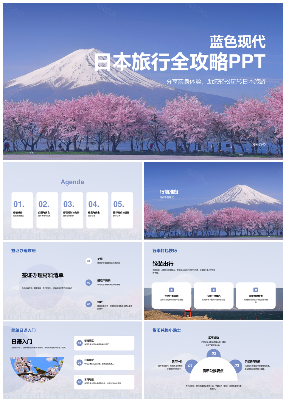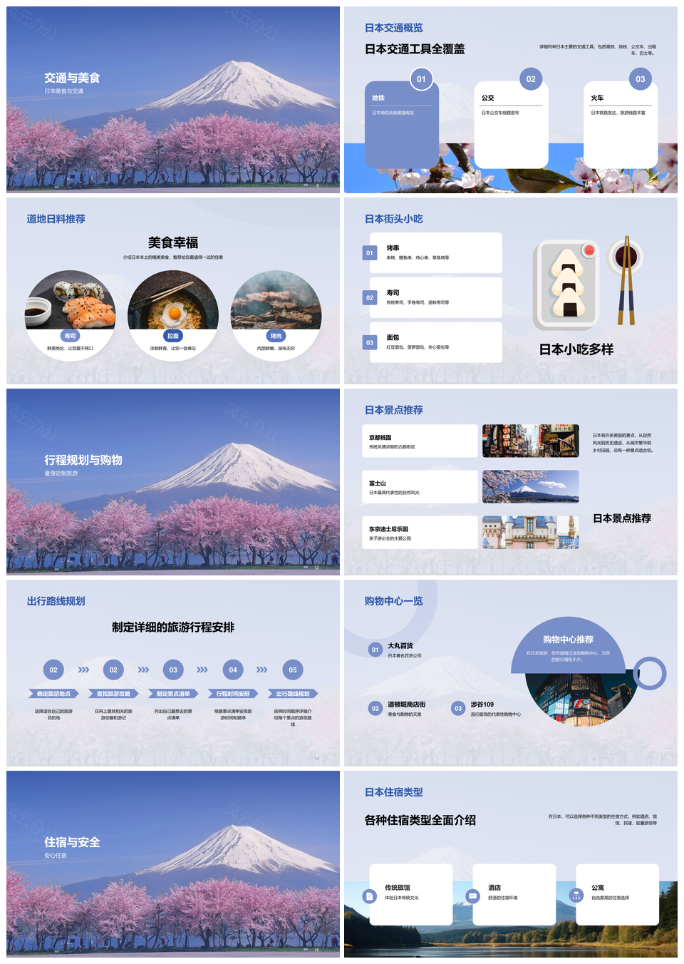 这是一张日本旅游攻略富士山樱花渐变蓝PPT模板,包含日本、旅游、攻略、富士山、樱花、渐变等主题内容,也可用作日本旅游攻略富士山、旅游攻略富士山樱花、富士山樱花渐变蓝、日本旅游富士山樱花、旅游富士山樱花渐变蓝、日本攻略富士山樱花、日本富士山樱花渐变蓝、日本旅游攻略樱花、攻略富士山樱花渐变蓝、日本富士山樱花、旅游攻略樱花渐变蓝、富士山樱花渐变蓝、日本樱花渐变蓝、旅游攻略富士山、日本旅游樱花、富士山樱花等PPT场景使用。