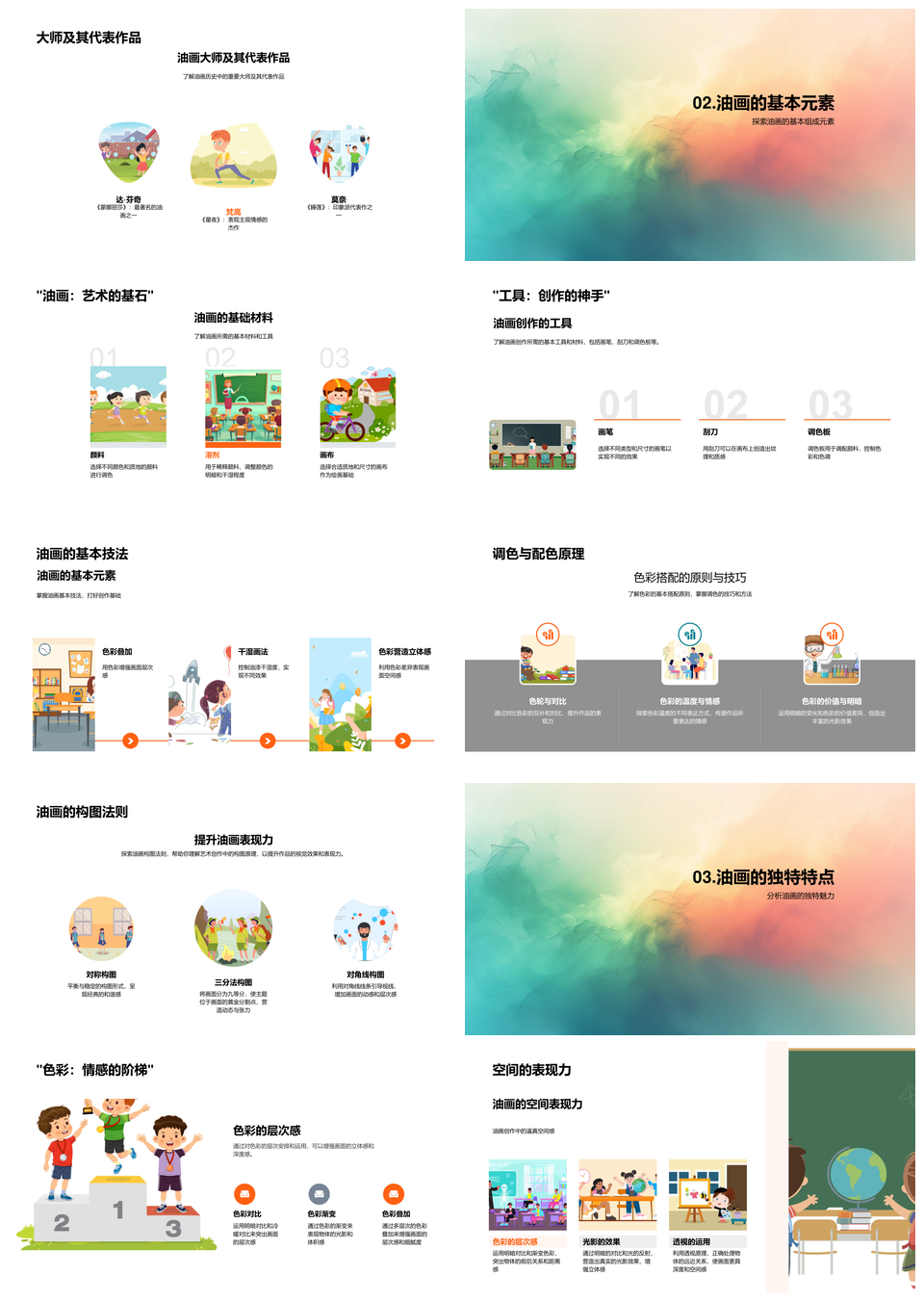 2025油画艺术理论实践定义历史工具材料调色技法PPT模板