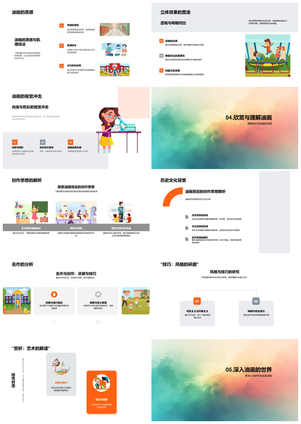 油画艺术源起材料工具技法调色质感解析PPT模板推荐