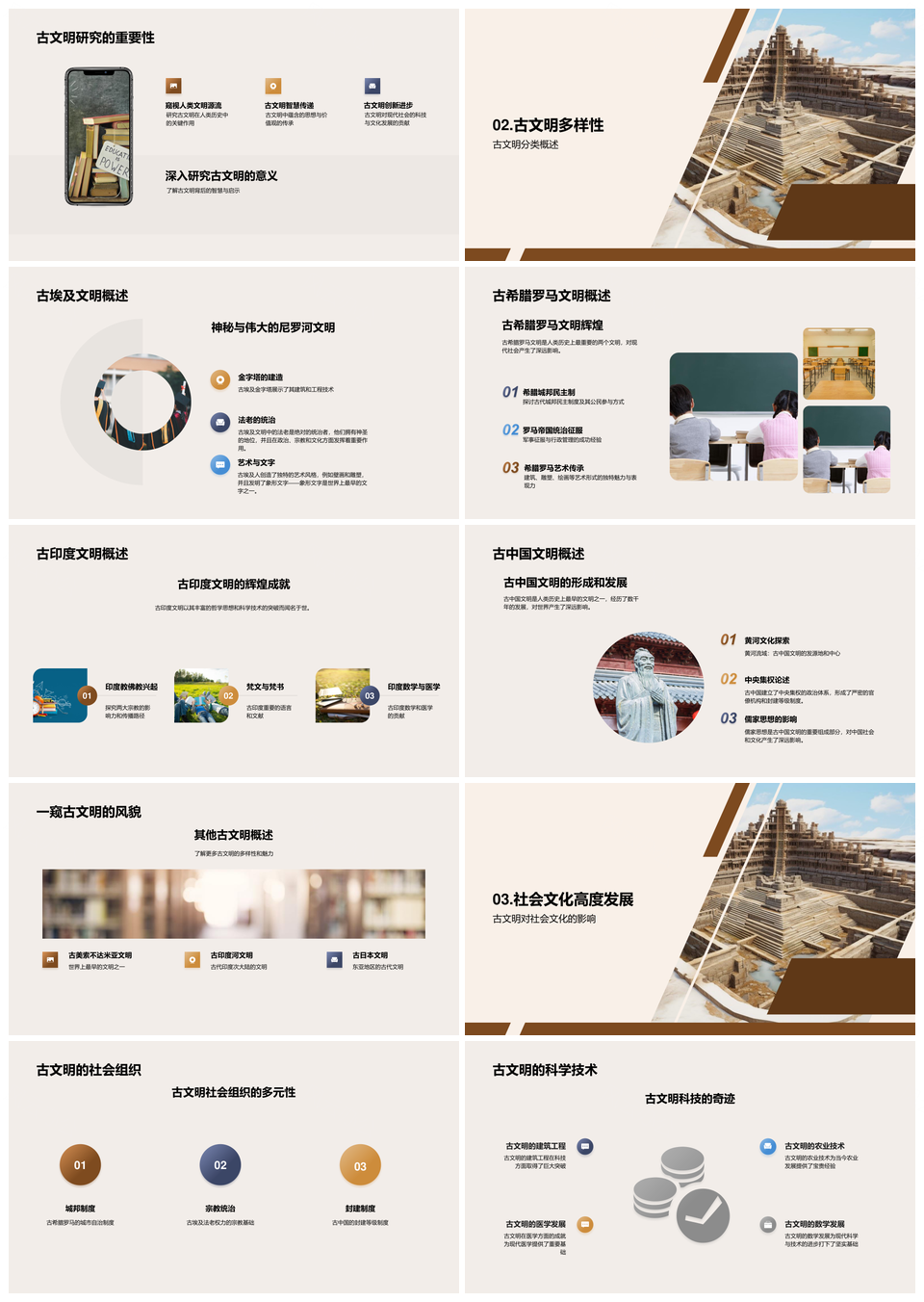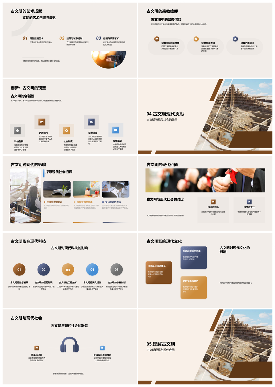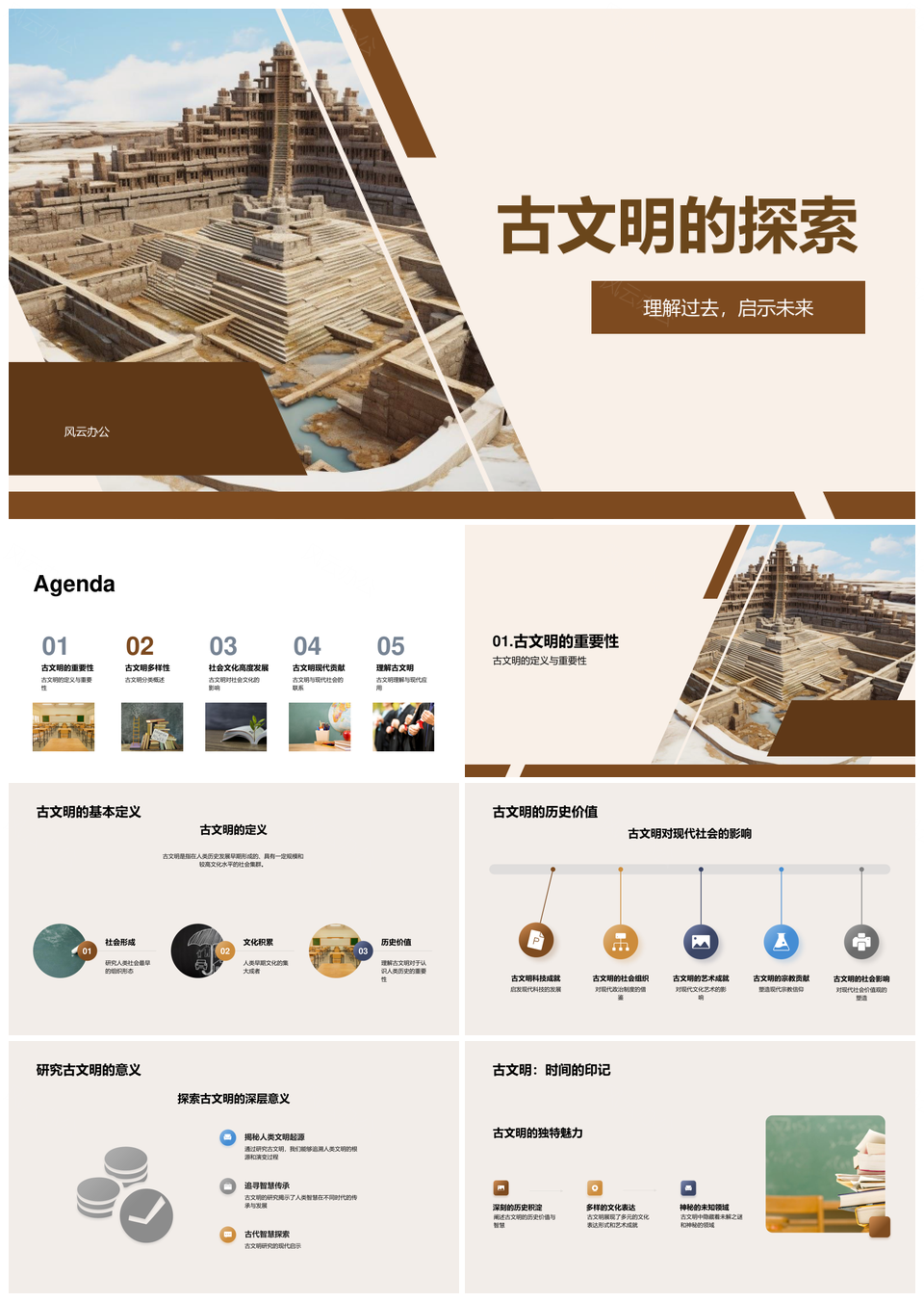 风云办公提供的古文明历史价值与现代社会文化探源PPT模板,下载格式为pptx,一共33页,作品中文字及图均可以修改和编辑,图片更改请在作品中右键图片并更换,文字修改请直接点击文字进行修改。