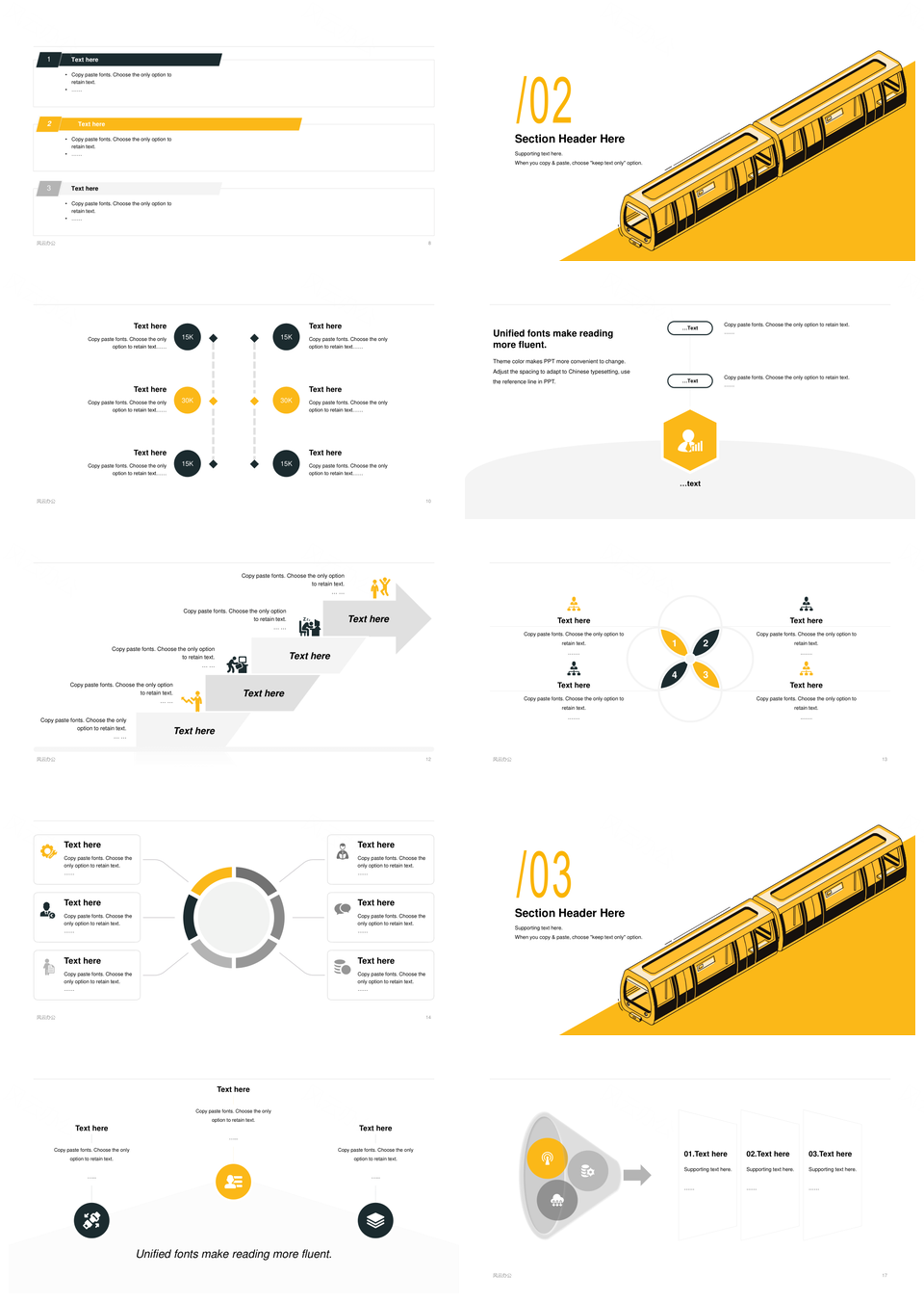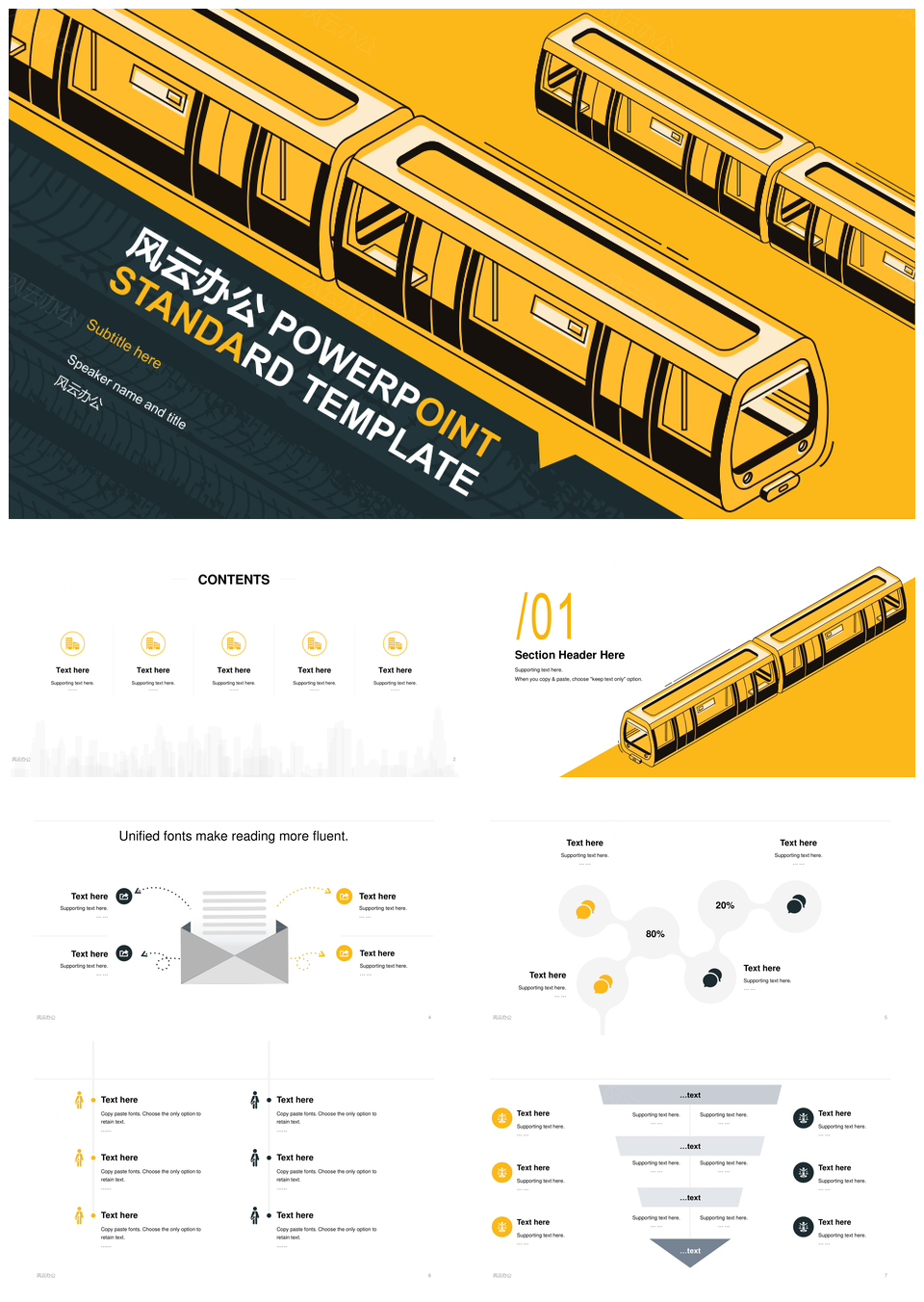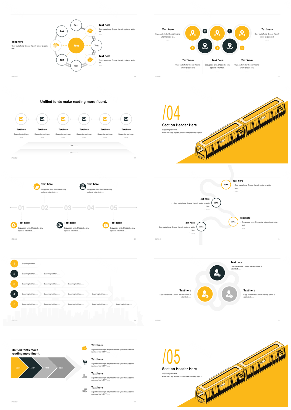 这是一张黄色交通坚持运输总结火车地铁道路行驶计划PPT模板,包含黄色交通、坚持、运输、总结、火车、地铁、道路、行驶、计划等主题内容,也可用作黄色交通运输计划、火车地铁道路行驶、地铁道路行驶计划、交通坚持运输总结、运输总结火车地铁、黄色交通坚持运输、坚持运输总结火车、运输总结地铁道路、火车地铁道路行驶、地铁道路行驶计划、黄色交通坚持运输总结、火车地铁道路行驶计划、交通运输总结计划、火车地铁行驶计划、黄色交通计划等PPT场景使用。 风云办公提供的黄色交通坚持运输总结火车地铁道路行驶计划PPT模板,下载格式为pptx,一共31页,作品中文字及图均可以修改和编辑,图片更改请在作品中右键图片并更换,文字修改请直接点击文字进行修改。