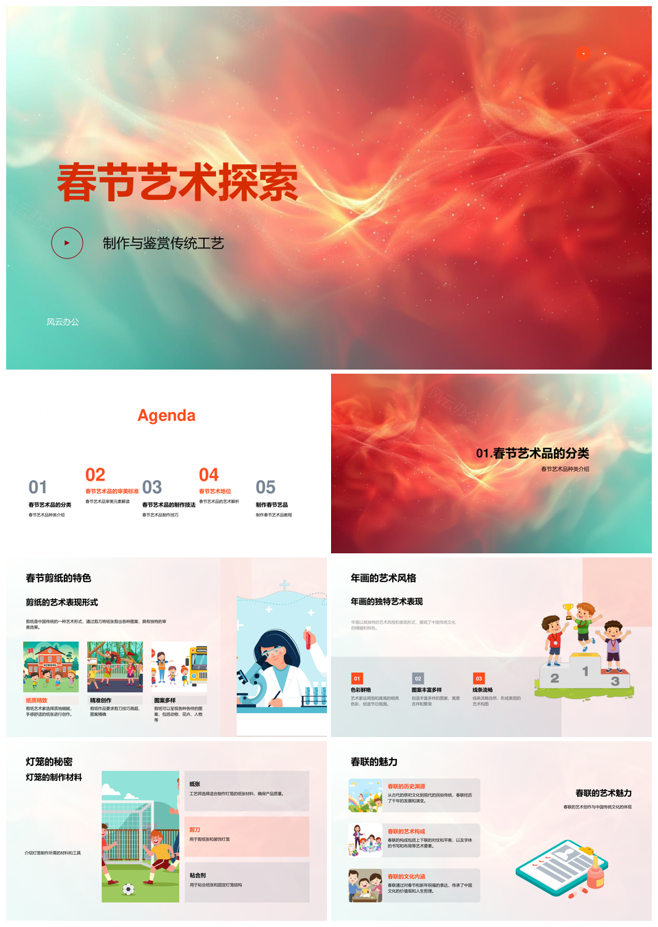 这是一张春节剪纸年画灯笼春联中国结审美艺术探析PPT模板,包含剪纸、年画、灯笼、春联、中国结、审美艺术等主题内容,也可用作春节剪纸年画灯笼、剪纸年画灯笼春联、年画灯笼春联中国结、灯笼春联中国结审美、春联中国结审美艺术、中国结审美艺术探析、春节剪纸年画春联、剪纸年画灯笼中国结、年画灯笼春联艺术、灯笼春联中国结艺术、春节剪纸灯笼春联、剪纸年画中国结审美、年画灯笼审美艺术、灯笼春联艺术探析、春联中国结艺术探析等PPT场景使用。 风云办公提供的春节剪纸年画灯笼春联中国结审美艺术探析PPT模板,下载格式为pptx,一共33页,作品中文字及图均可以修改和编辑,图片更改请在作品中右键图片并更换,文字修改请直接点击文字进行修改。