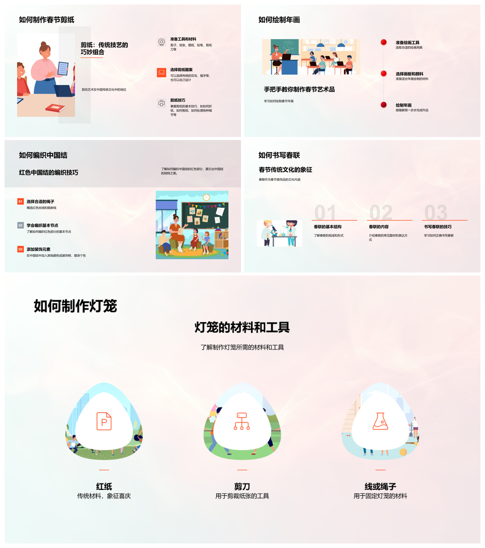 春节剪纸年画灯笼春联中国结审美艺术探析PPT模板推荐