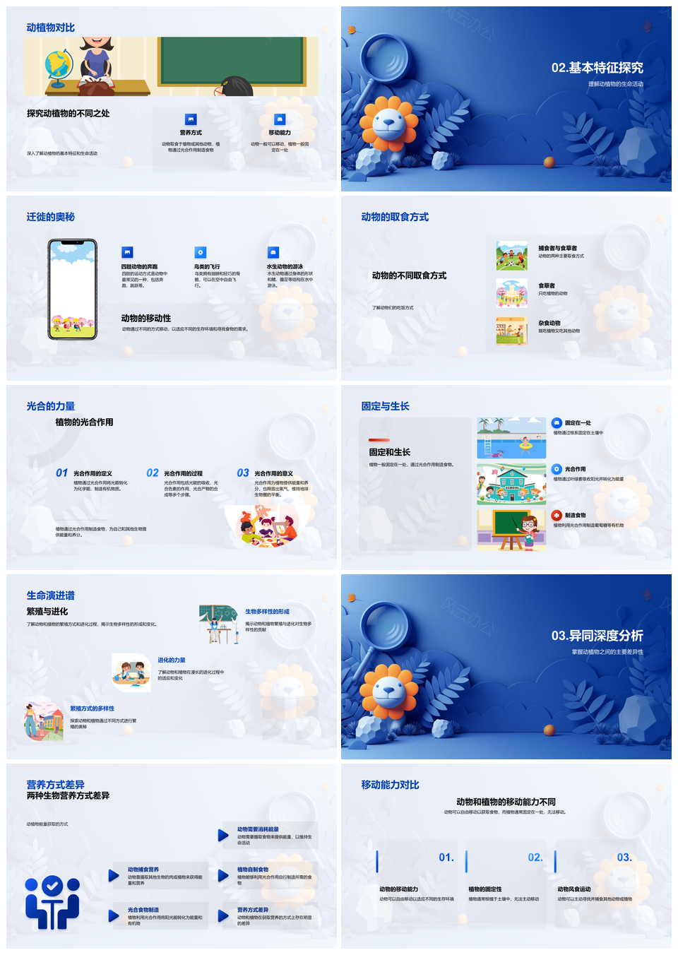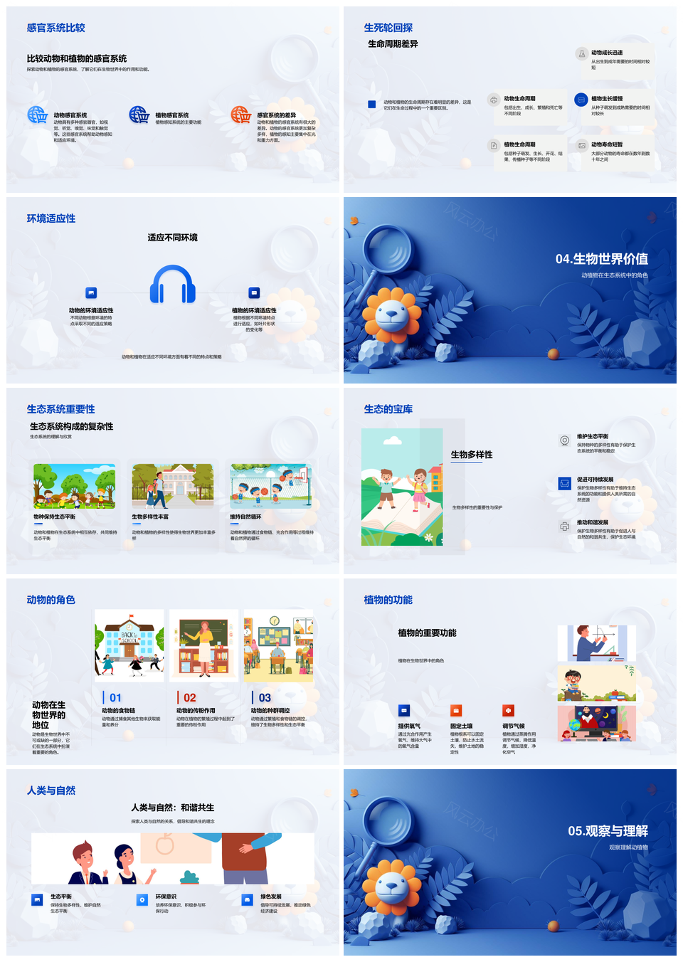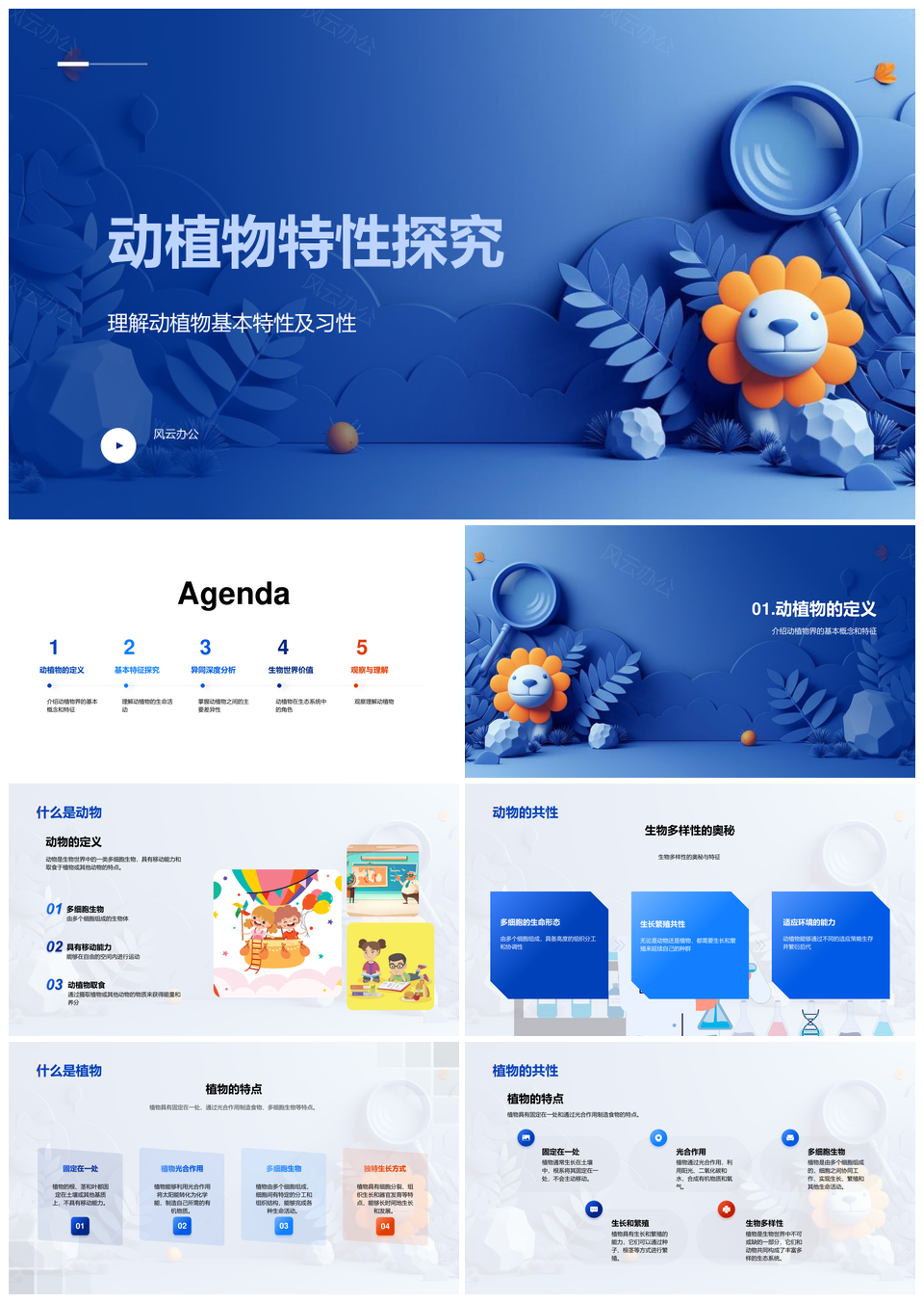 风云办公提供的动植物特性对比与生物多样性探究PPT模板,下载格式为pptx,一共33页,作品中文字及图均可以修改和编辑,图片更改请在作品中右键图片并更换,文字修改请直接点击文字进行修改。