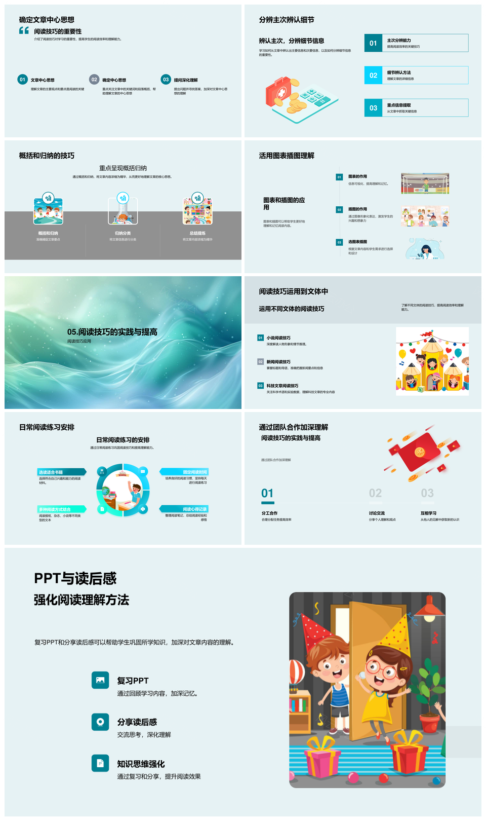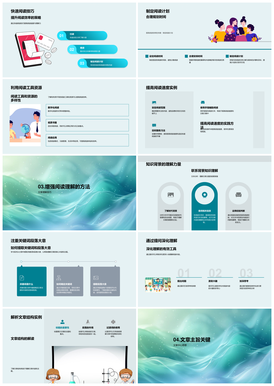 阅读技巧深度思考快速阅读计划工具理解中心思想PPT模板推荐
