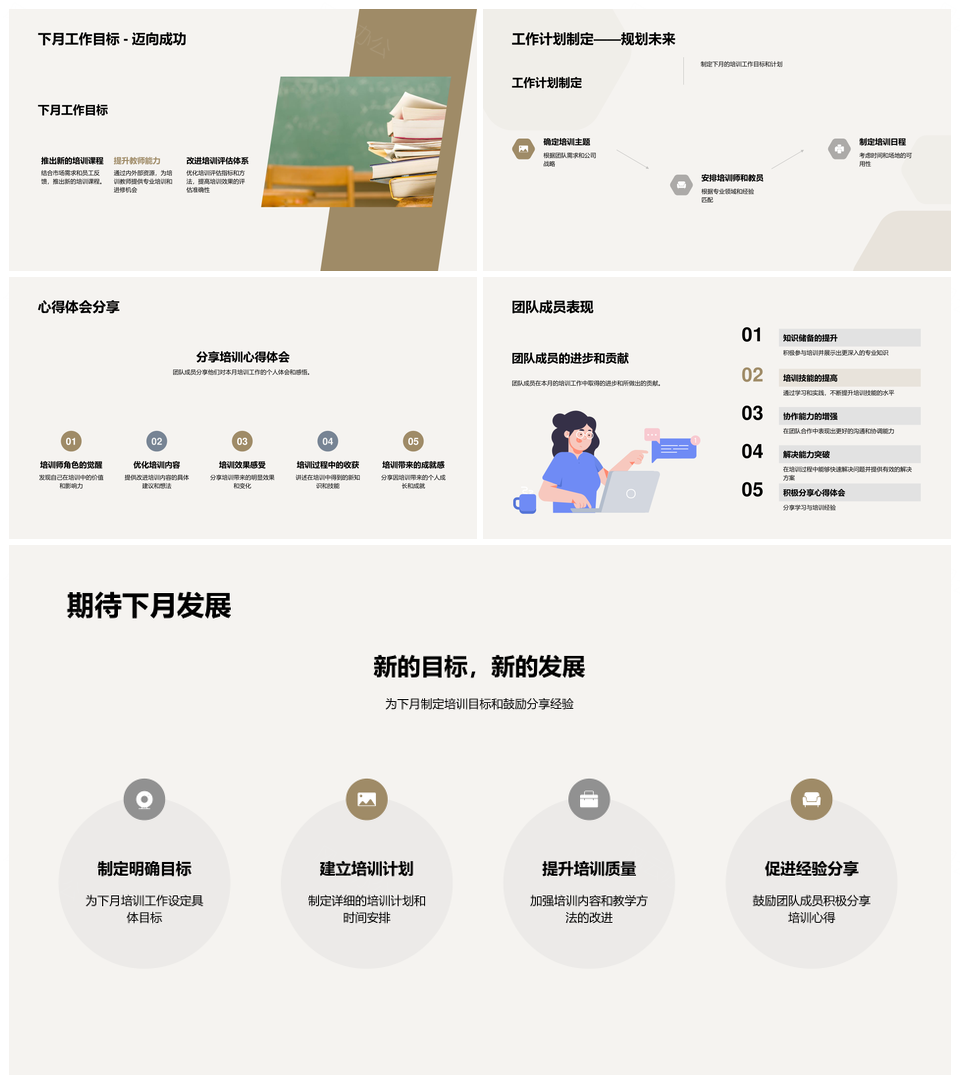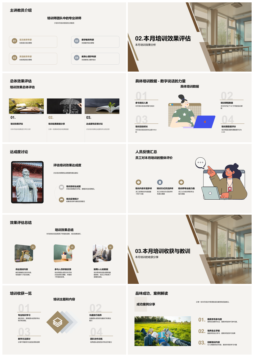 教育培训经理团队培训月总结主题内容活动效果评估优化规划图表PPT模板推荐
