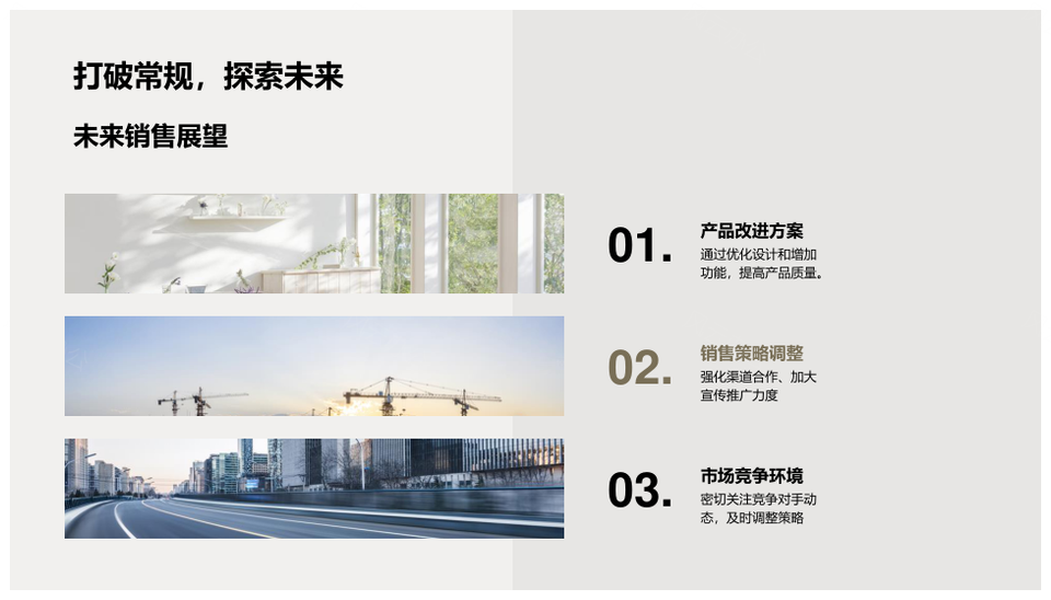 这是一张2025家居销售策略产品改进市场竞争分析PPT模板,包含2025、家居、销售策略、产品、改进、市场、竞争、分析等主题内容,也可用作2025家居销售策略、家居销售策略产品、销售策略产品改进、策略产品改进市场、产品改进市场竞争、改进市场竞争分析、2025市场竞争分析、2025产品改进市场、家居产品改进市场、销售改进市场竞争、策略市场竞争分析、产品竞争分析、产品改进市场、市场竞争分析、销售策略产品等PPT场景使用。 风云办公提供的2025家居销售策略产品改进市场竞争分析PPT模板,下载格式为pptx,一共29页,作品中文字及图均可以修改和编辑,图片更改请在作品中右键图片并更换,文字修改请直接点击文字进行修改。