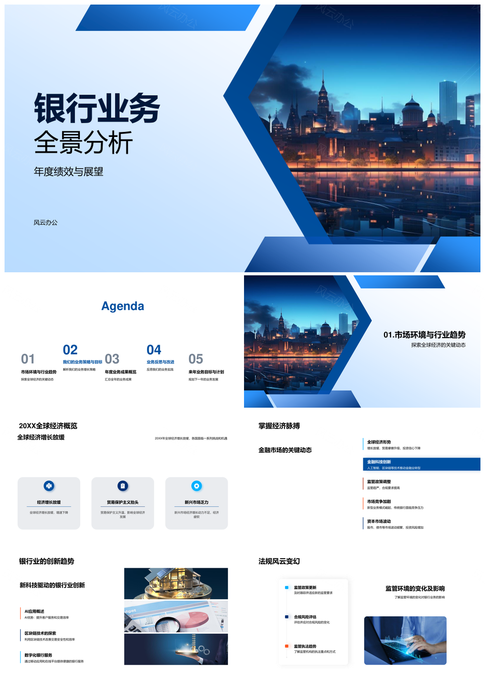 银行业务全景年度展望与全球金融动态趋势分析PPT模板推荐