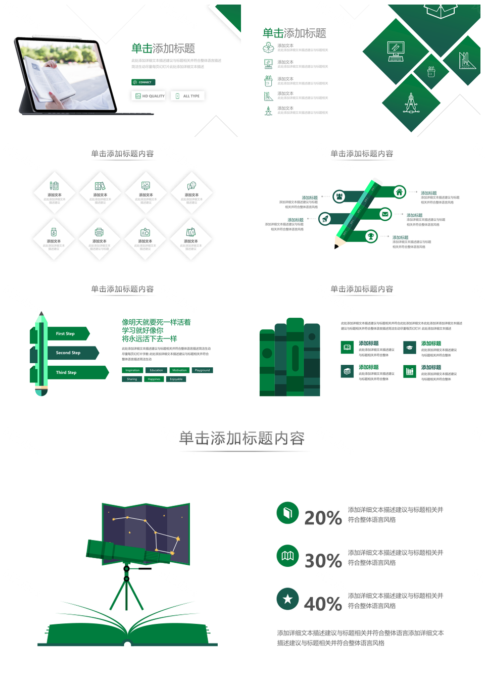 绿色教育培训宣传PPT模板简约演讲可编辑