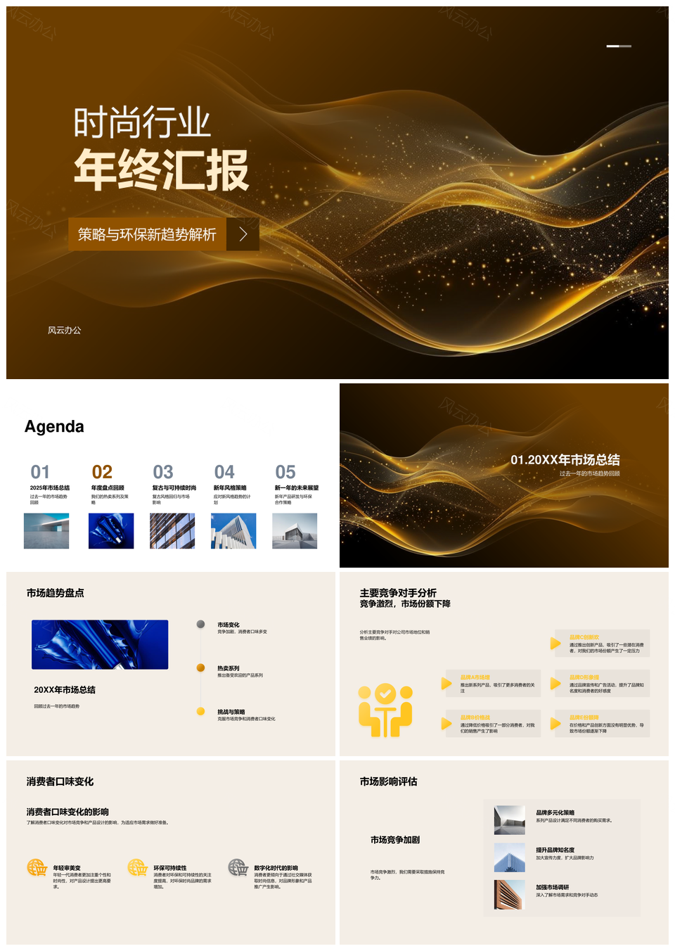 这是一张2025时尚年终策略环保趋势市场消费热销竞争汇报PPT模板,包含2025、时尚、年终、策略、环保、趋势、市场、消费、热销、竞争、汇报等主题内容,也可用作环保趋势市场消费、市场消费热销竞争、时尚年终策略环保、年终策略环保趋势、消费热销竞争汇报、2025时尚环保趋势、策略环保趋势市场、环保趋势市场热销、趋势市场消费热销、2025时尚年终汇报、年终市场消费热销、时尚策略环保汇报、环保市场热销竞争、2025环保趋势汇报、时尚市场消费竞争等PPT场景使用。 风云办公提供的2025时尚年终策略环保趋势市场消费热销竞争汇报PPT模板,下载格式为pptx,一共26页,作品中文字及图均可以修改和编辑,图片更改请在作品中右键图片并更换,文字修改请直接点击文字进行修改。