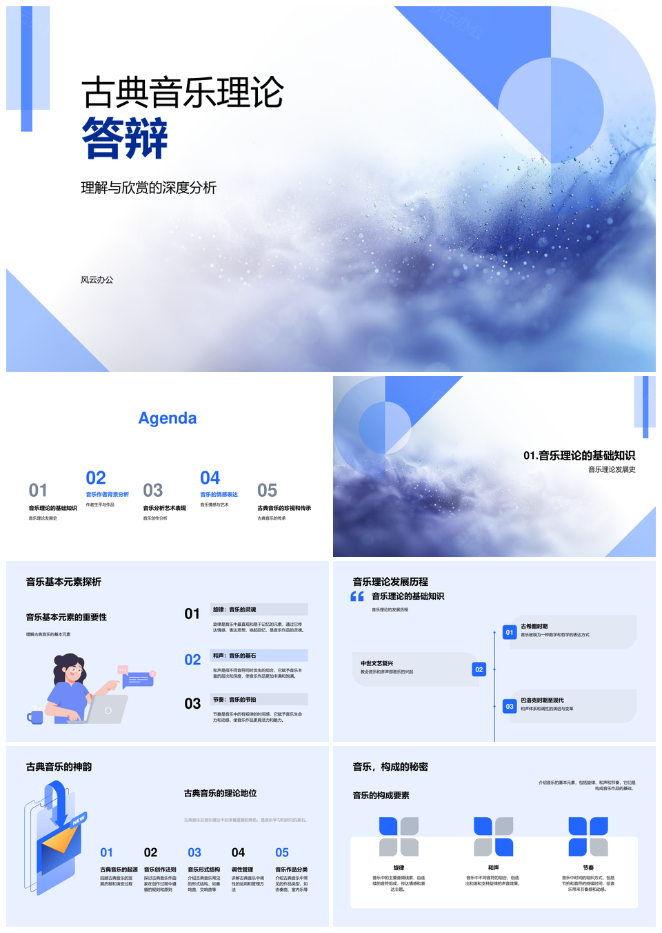 风云办公提供的古典音乐理论要素分析与情感表达答辩PPT模板,下载格式为pptx,一共28页,作品中文字及图均可以修改和编辑,图片更改请在作品中右键图片并更换,文字修改请直接点击文字进行修改。