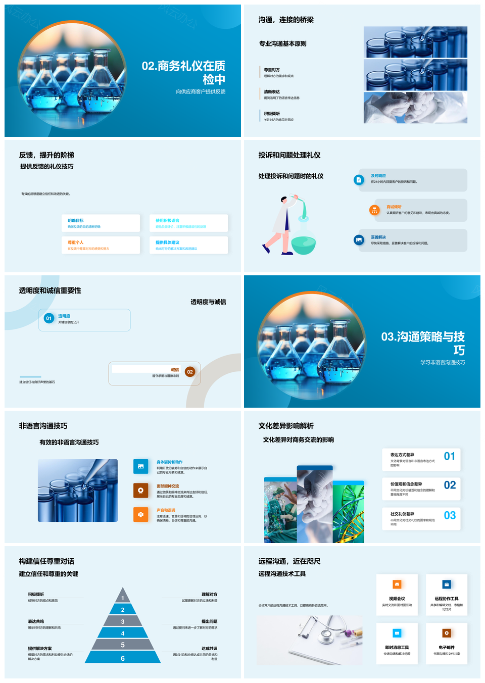 商务化学质检流程质控点沟通技巧显微镜应用PPT模板推荐
