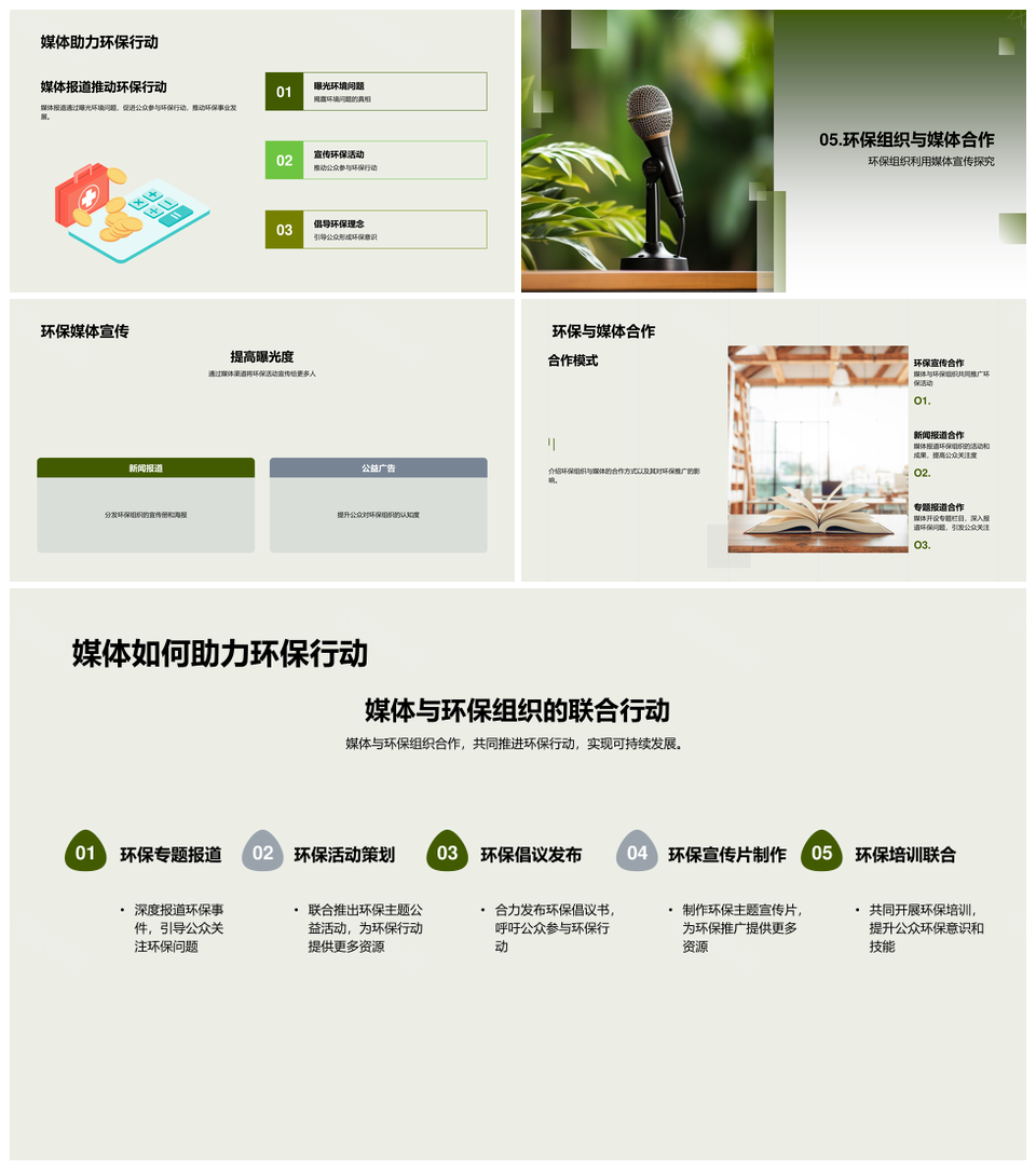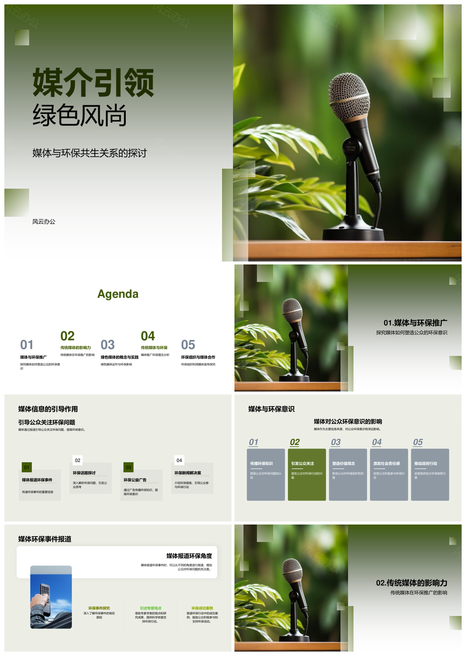 风云办公提供的绿色媒体扩音环保推广引领公众意识PPT模板,下载格式为pptx,一共23页,作品中文字及图均可以修改和编辑,图片更改请在作品中右键图片并更换,文字修改请直接点击文字进行修改。