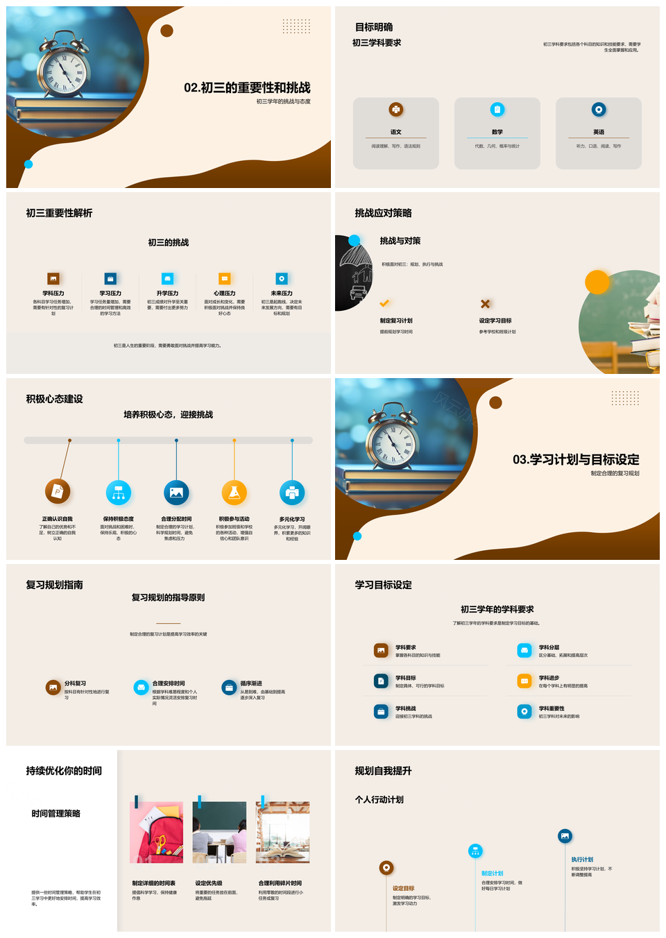 初三学习能力提升学科复习规划时间管理PPT模板推荐